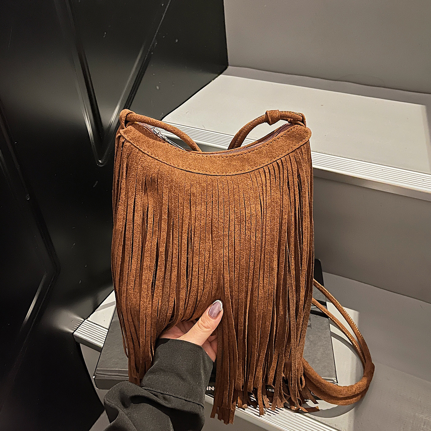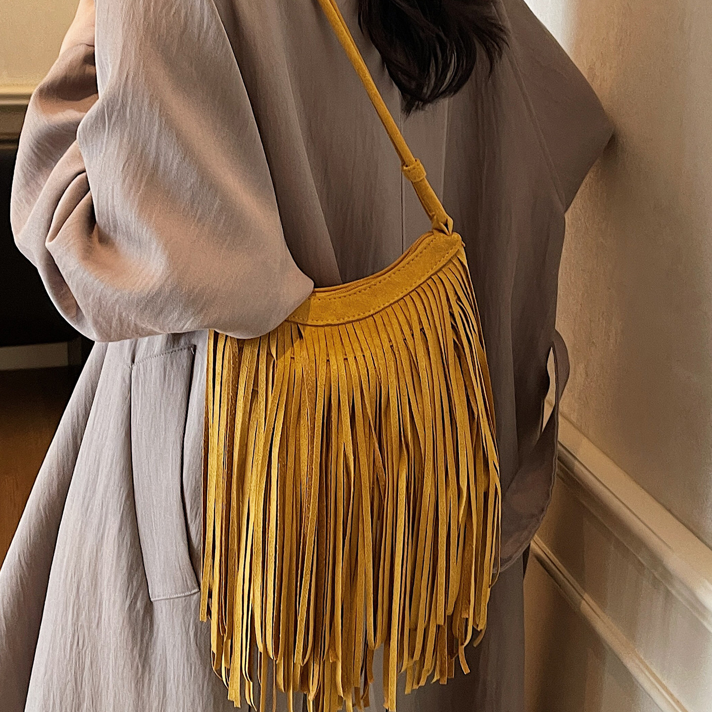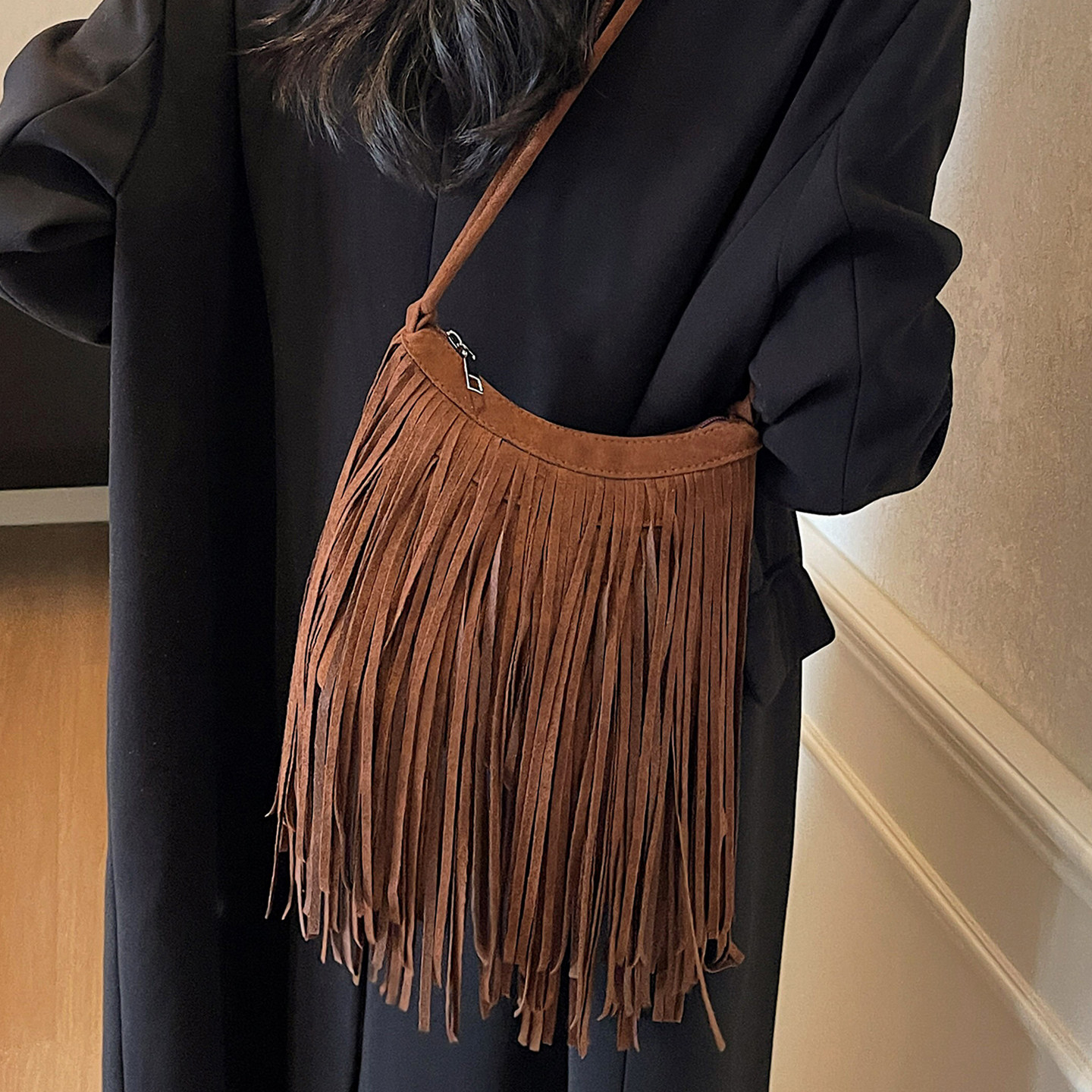 📚 复古流苏小包包女2025新款时尚麂皮绒小方包夏季高级感磨砂斜挎包