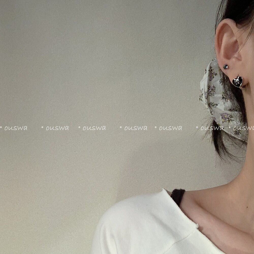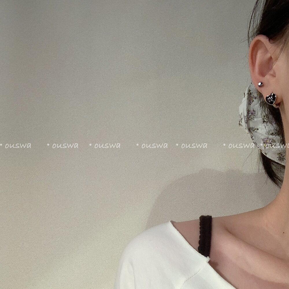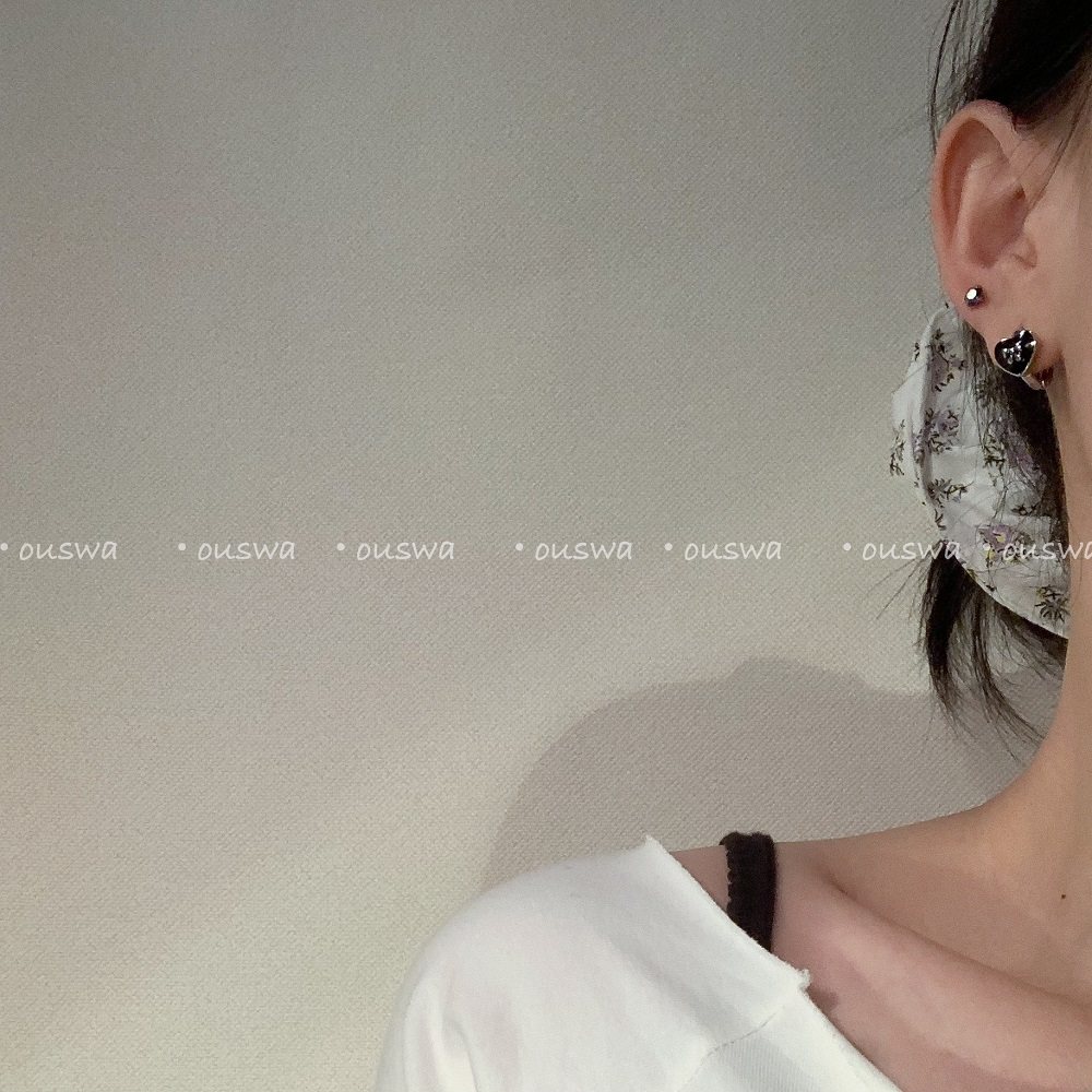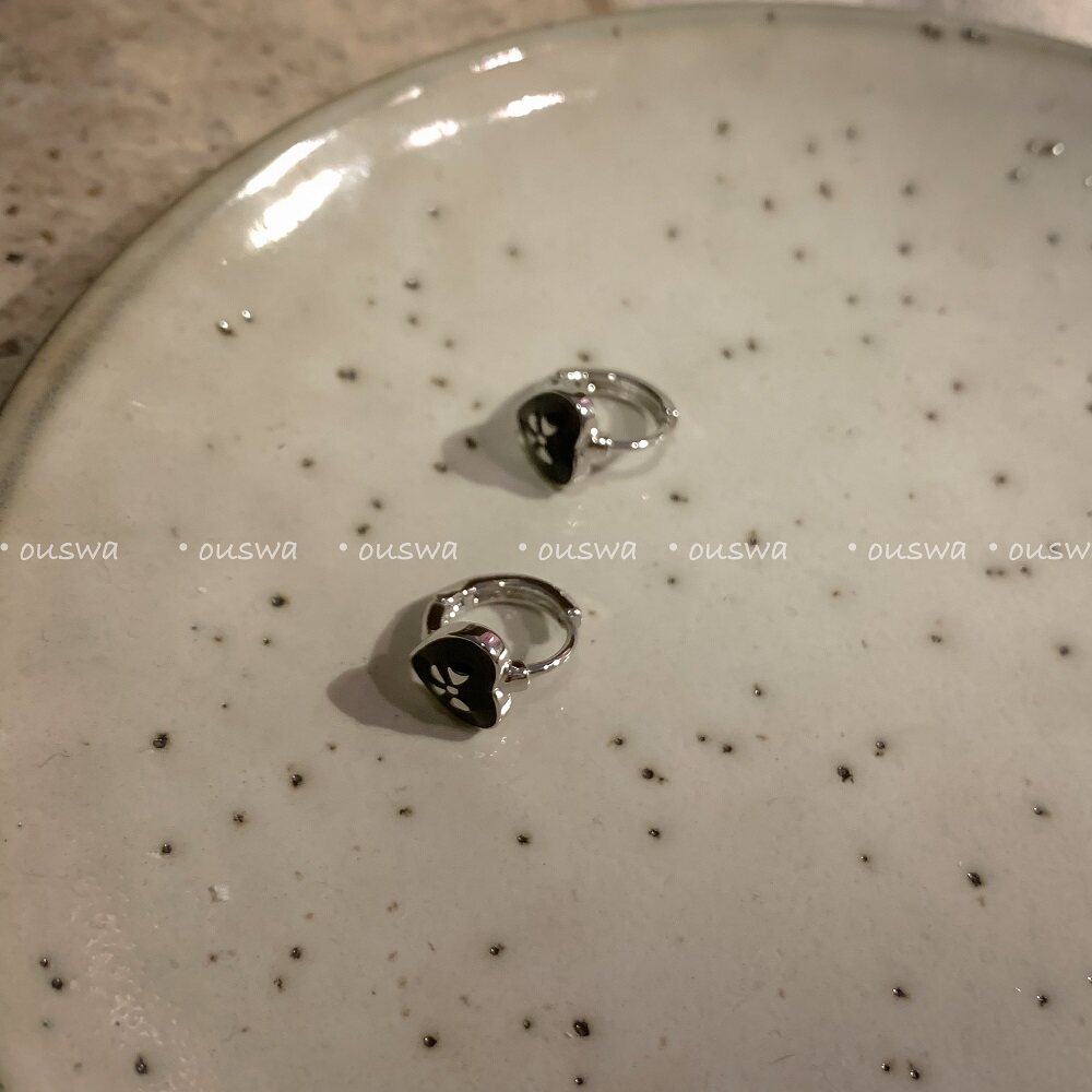 📚 ouswa大雨落在黑岛上 纯欲ins百搭极简黑色蝴蝶结爱心耳环耳扣