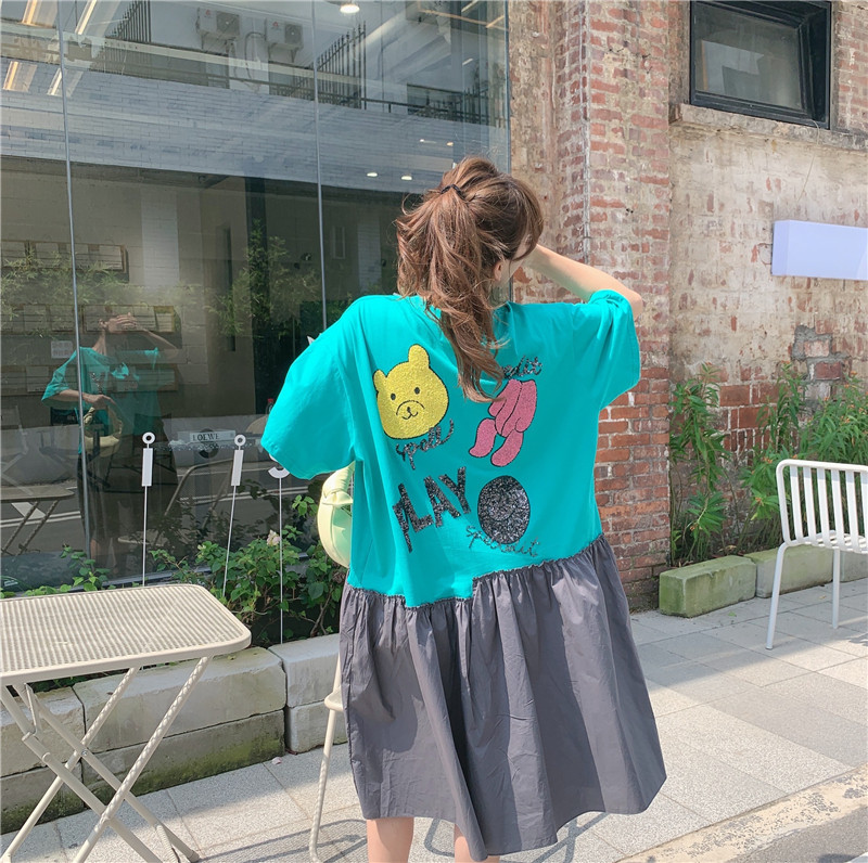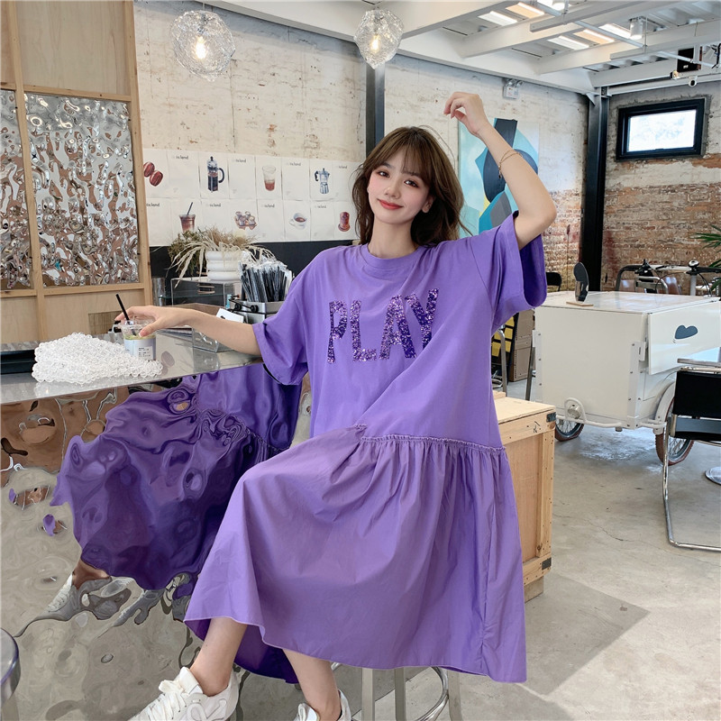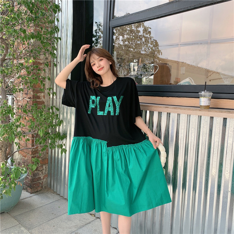 📚 JL SUNFLOWER韩国东大门宽松中长款荷叶边拼接短袖t恤连衣裙女夏
