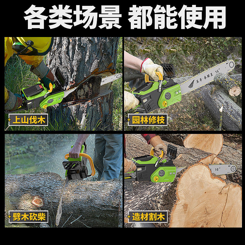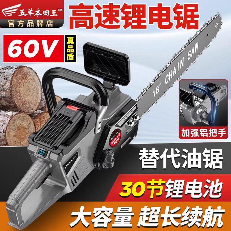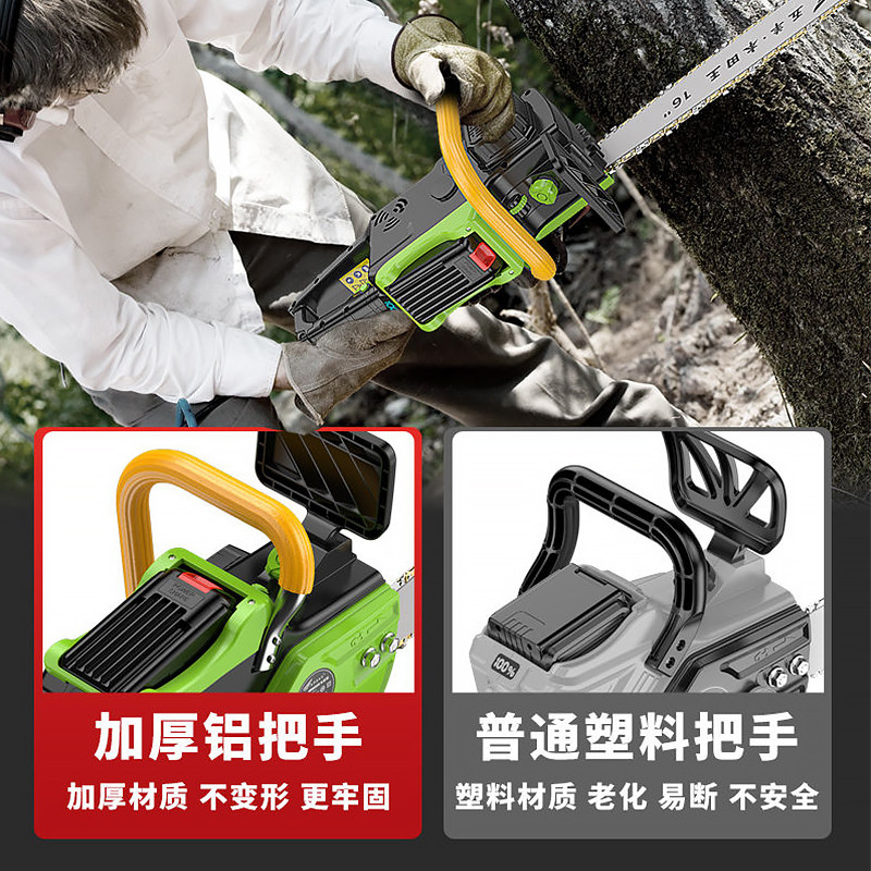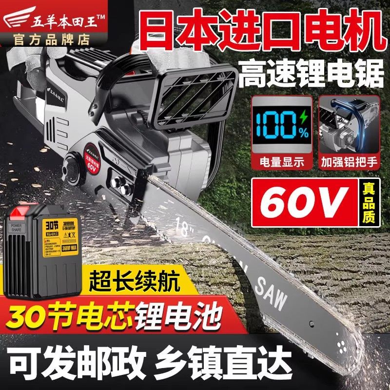 📚 进口60v无刷纯铜电锯充电式锂电锯家用小型手持伐木锯链砍树神器