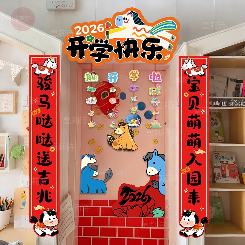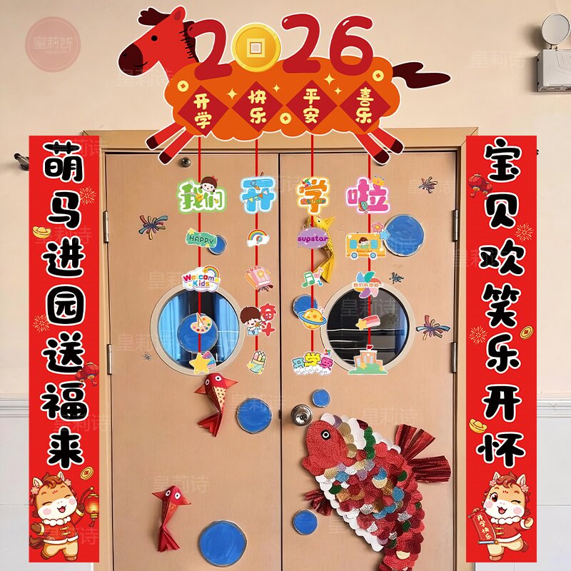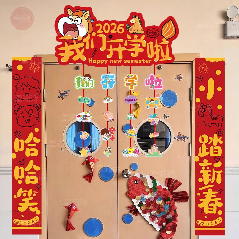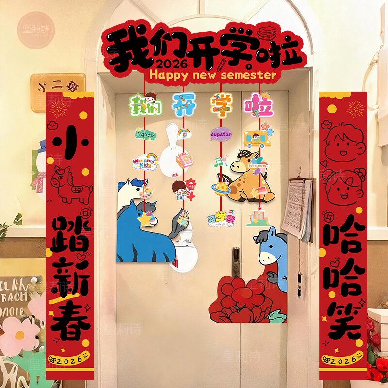 📚 2026幼儿园开学仪式感氛围场景布置新学期教室装饰门头对联KT展板