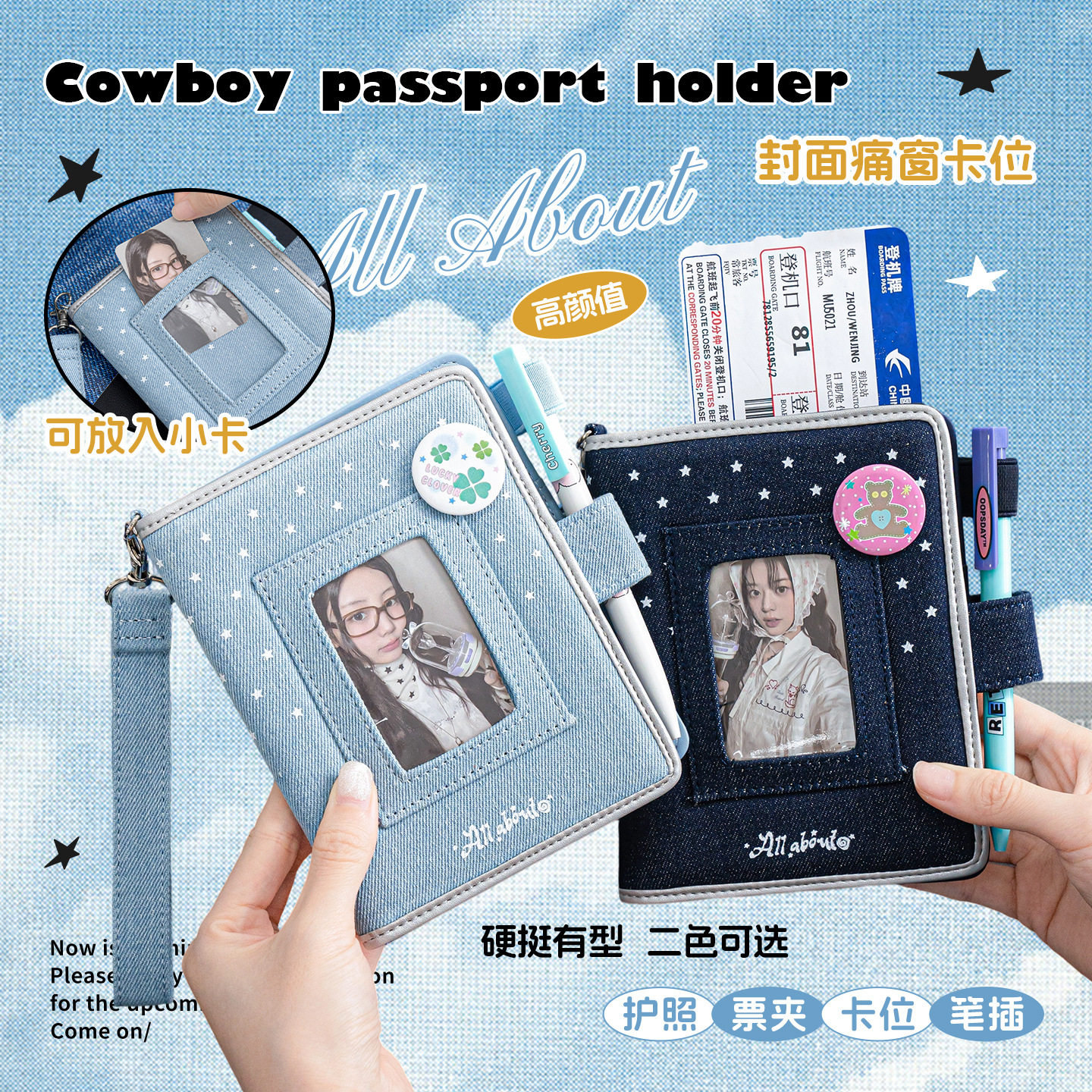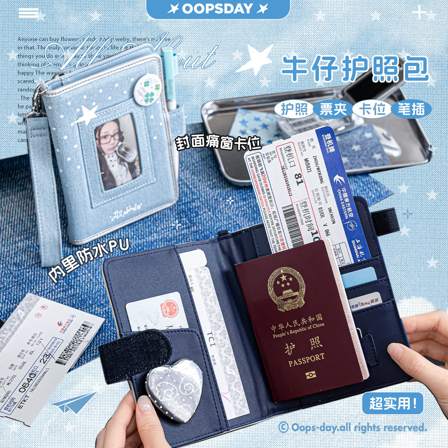 📚 跨境OOPSDAY休憩日 Holiday牛仔护照包 原创护照夹多功能证件收纳