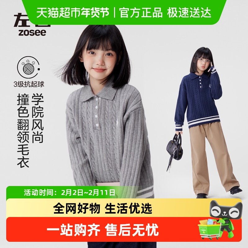 📚 左西童装女童毛衣秋冬款2025新款儿童麻花POLO领针织衫学院风冬装