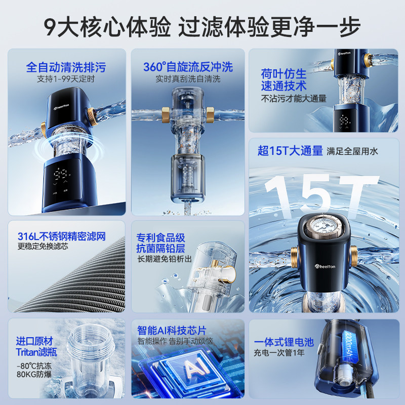 📚 惠尔顿前置过滤器P0063PRO升级款家用全自动清洗全屋超15T智能