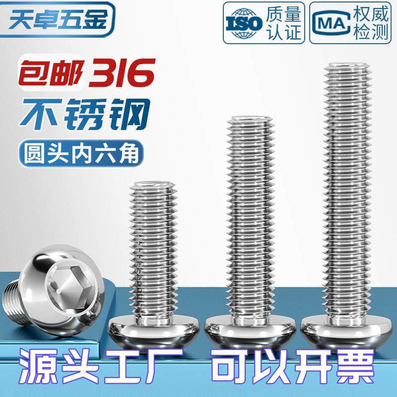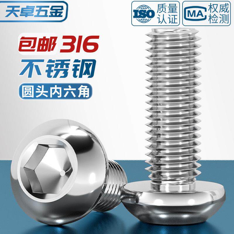 📚 316不锈钢圆头盘头内六角螺丝半圆杯螺钉蘑菇螺栓3M4M5M6M8M10M12
