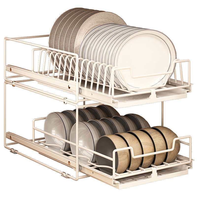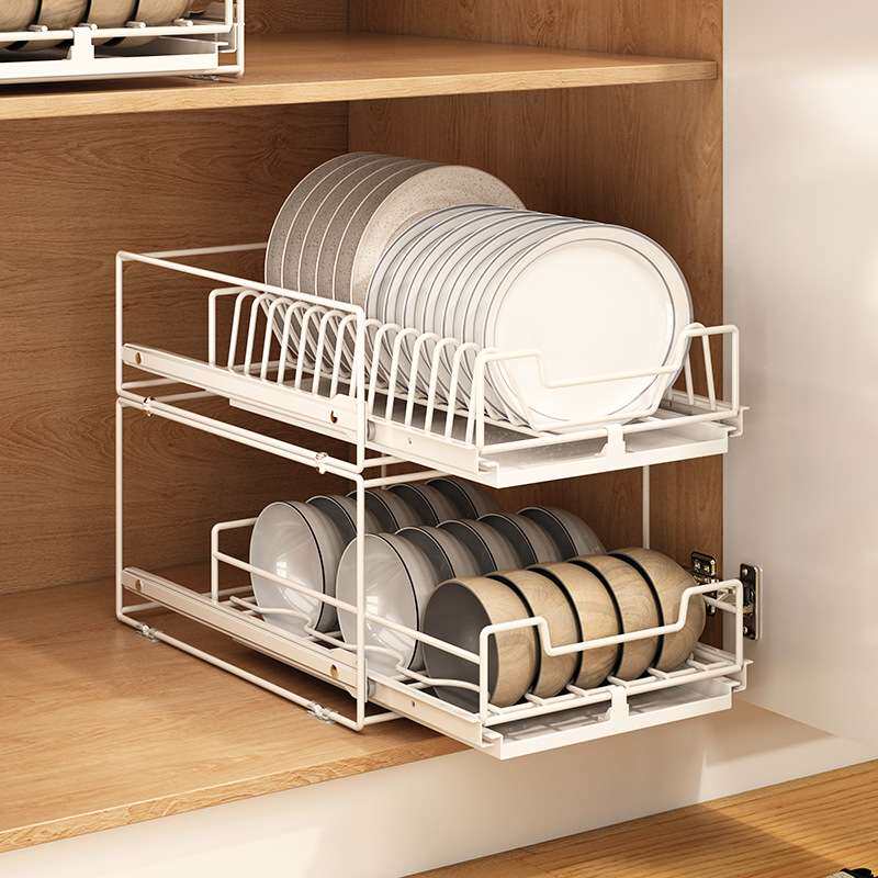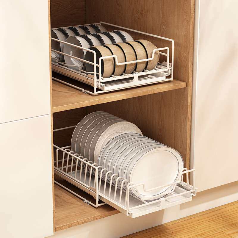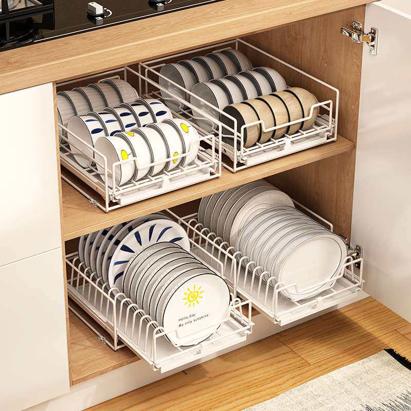 📚 抽拉式柜内放碗碟橱柜碗架盘子碗盘厨房收纳拉篮抽屉沥水置物架子