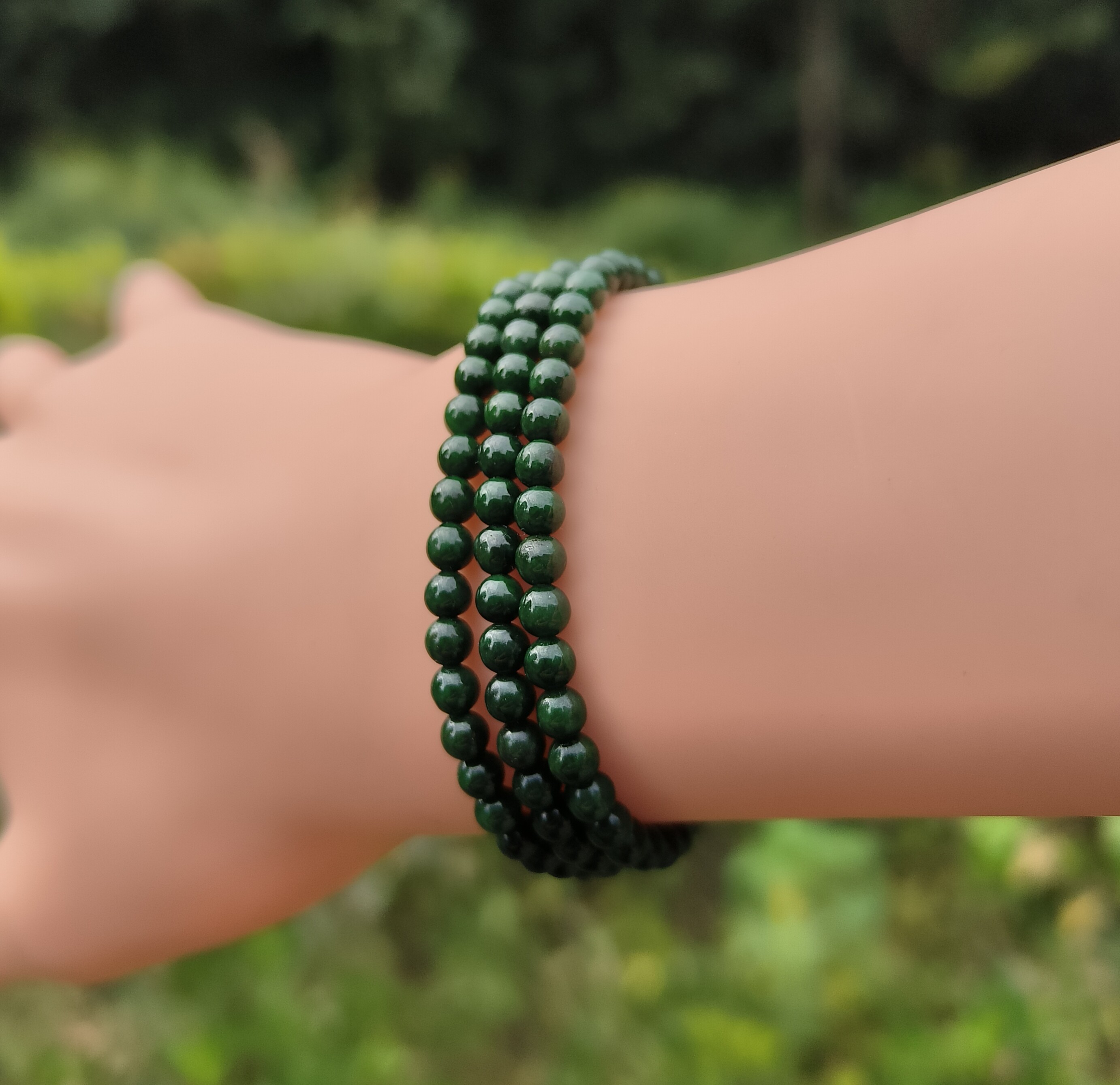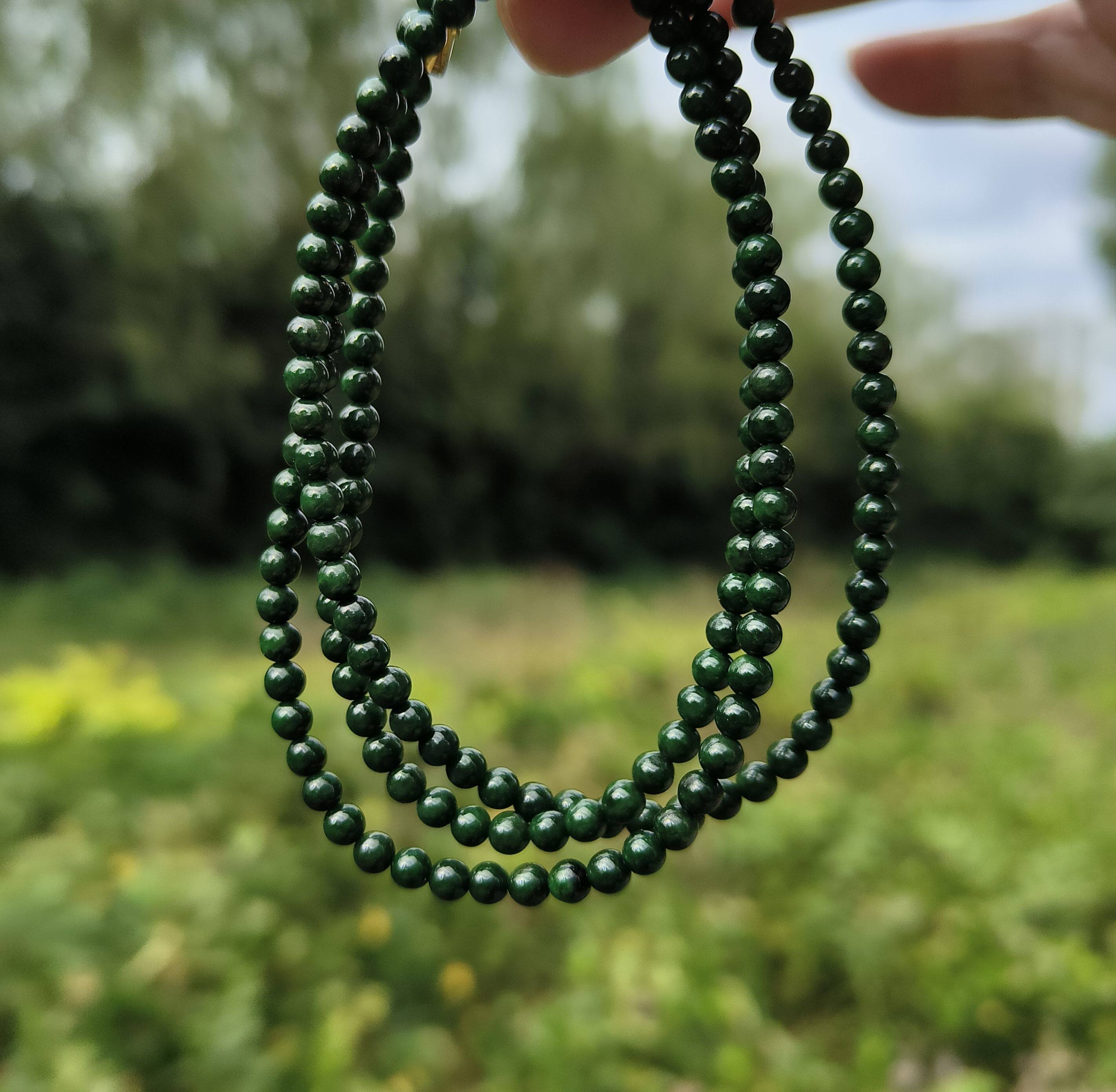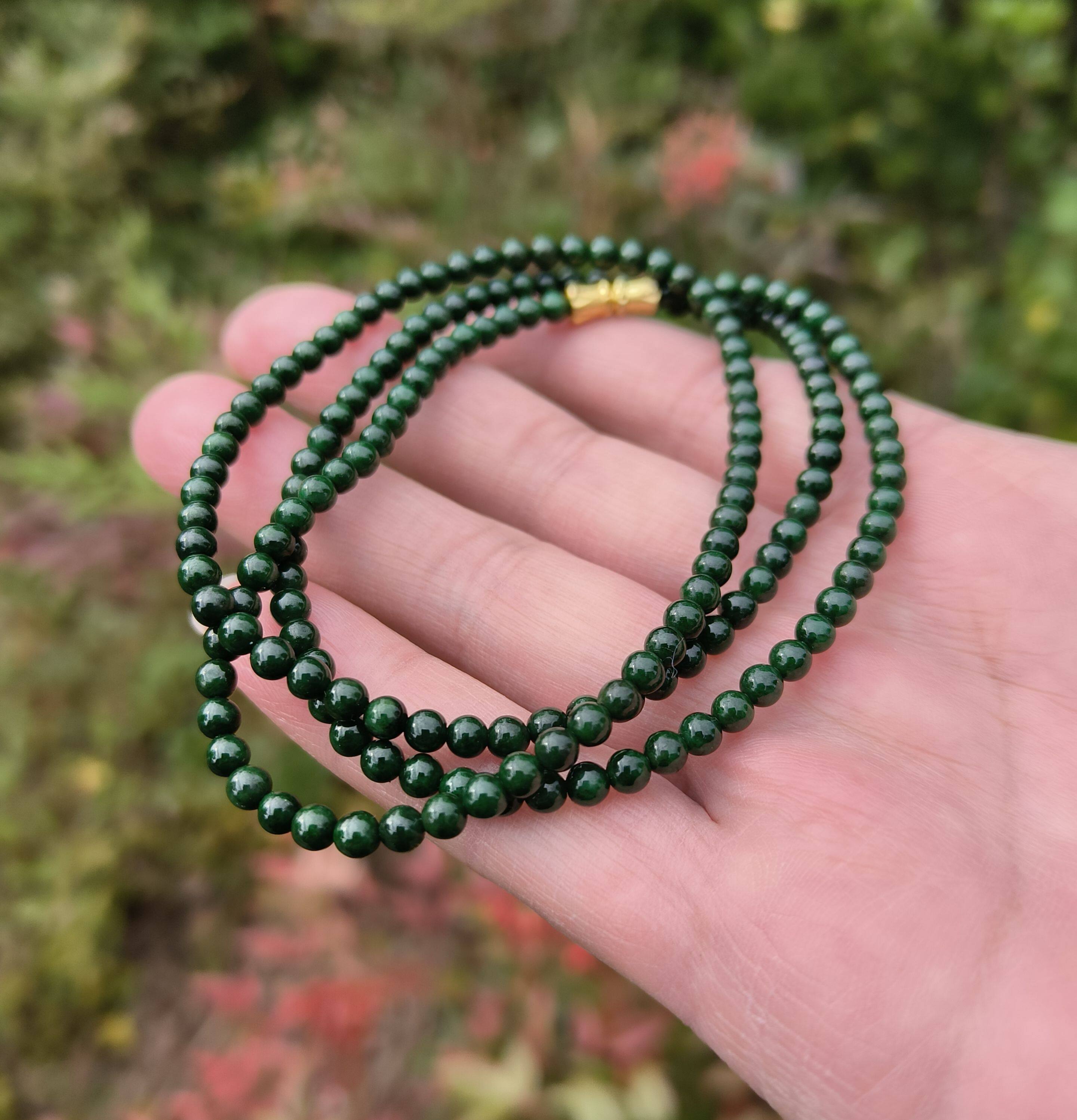 📚 卡3.7mm老绿珠翡翠手链手串女款绕手三圈天然缅甸翡翠A货送证书