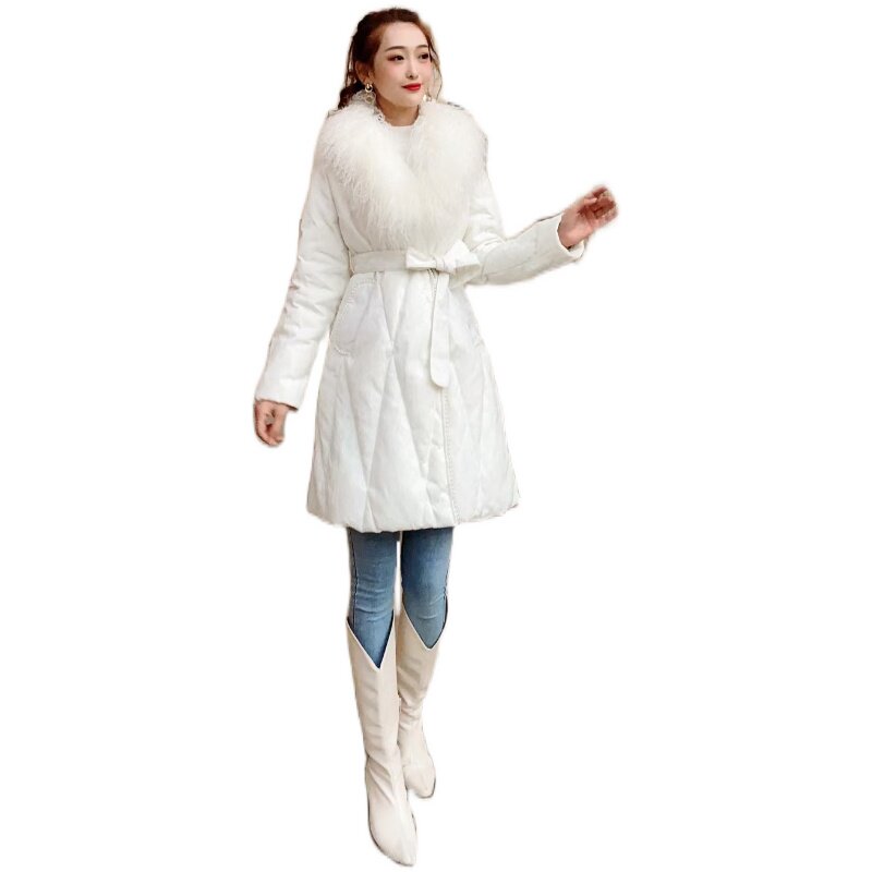 📚 羊羔毛大毛领时尚羽绒服小个子洋气复古蕾丝提花珍珠口袋外套保暖