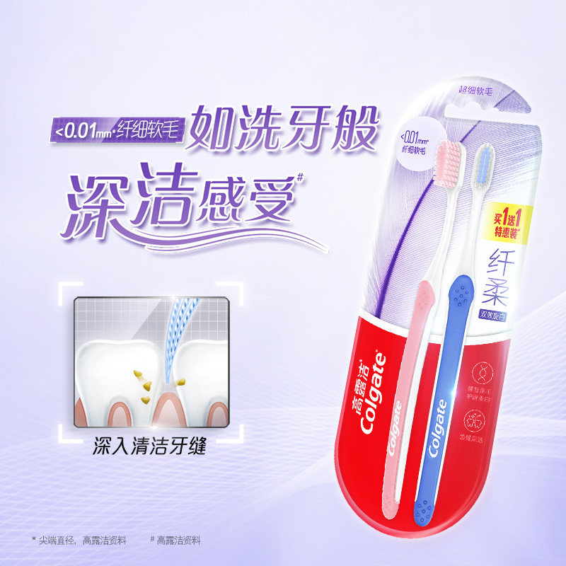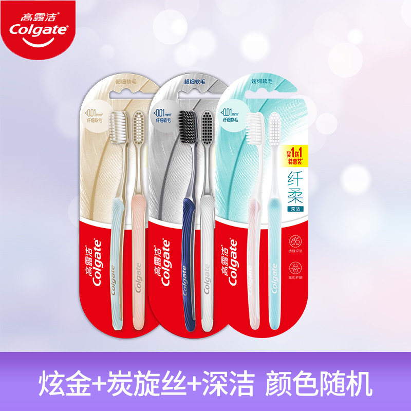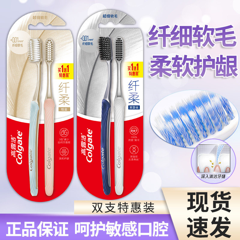 📚 高露洁纤柔炭金牙刷软毛深层清洁牙缝超细护龈成人家用情侣2支装