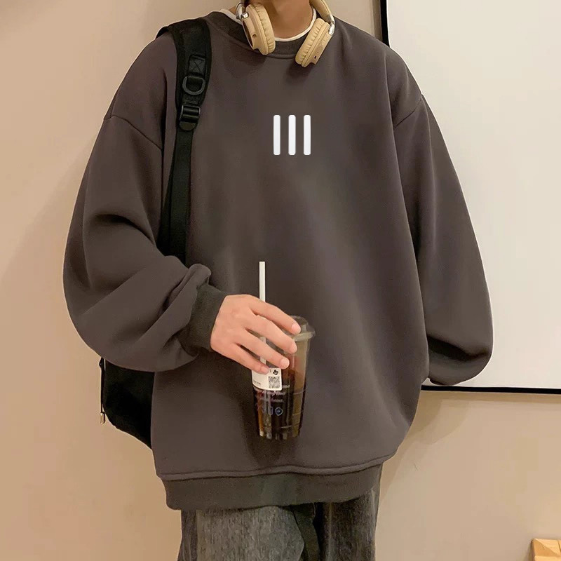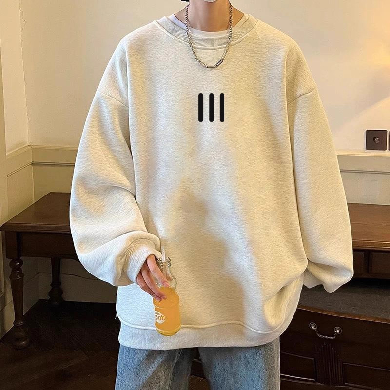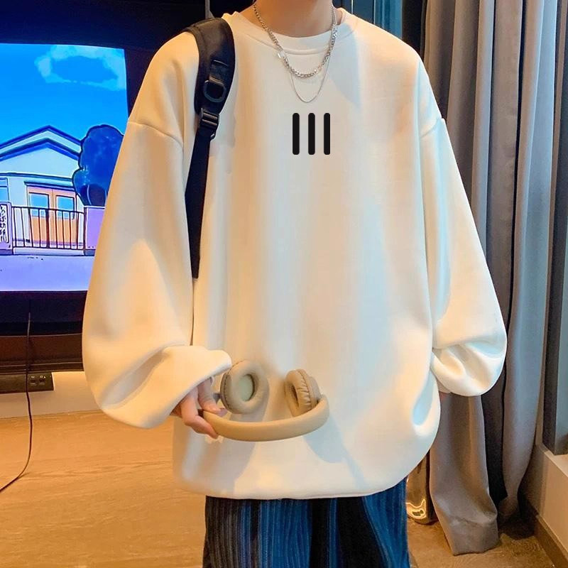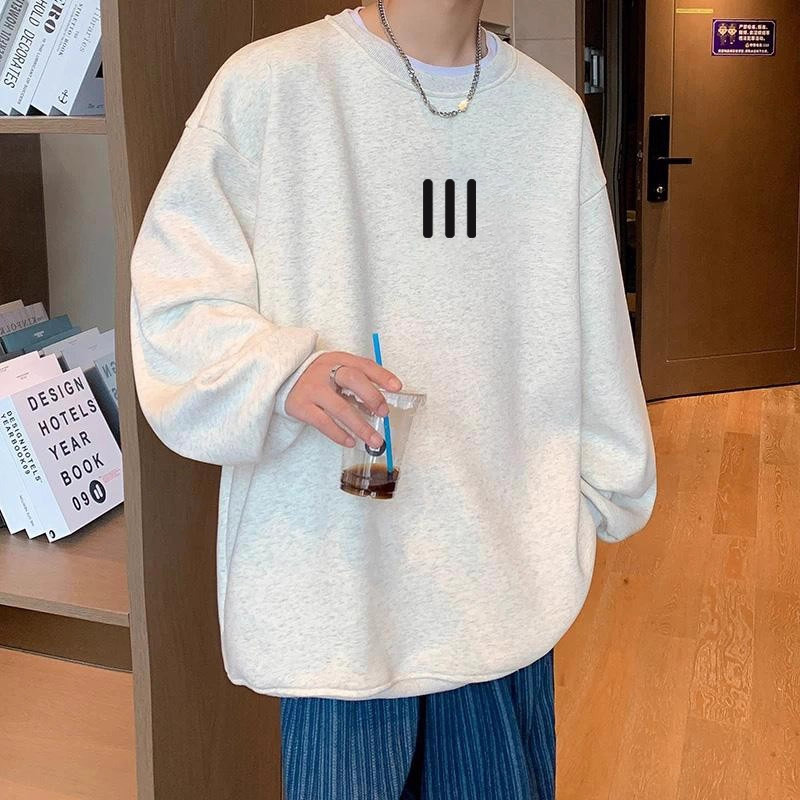 📚 中大童港风圆领白灰色卫衣男童2025春秋季潮牌儿童宽松长袖上衣服