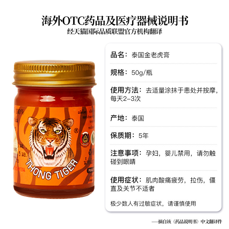 📚 泰国金老虎膏thongtiger加强版老虎油止痛跌打损伤原装正品进口R