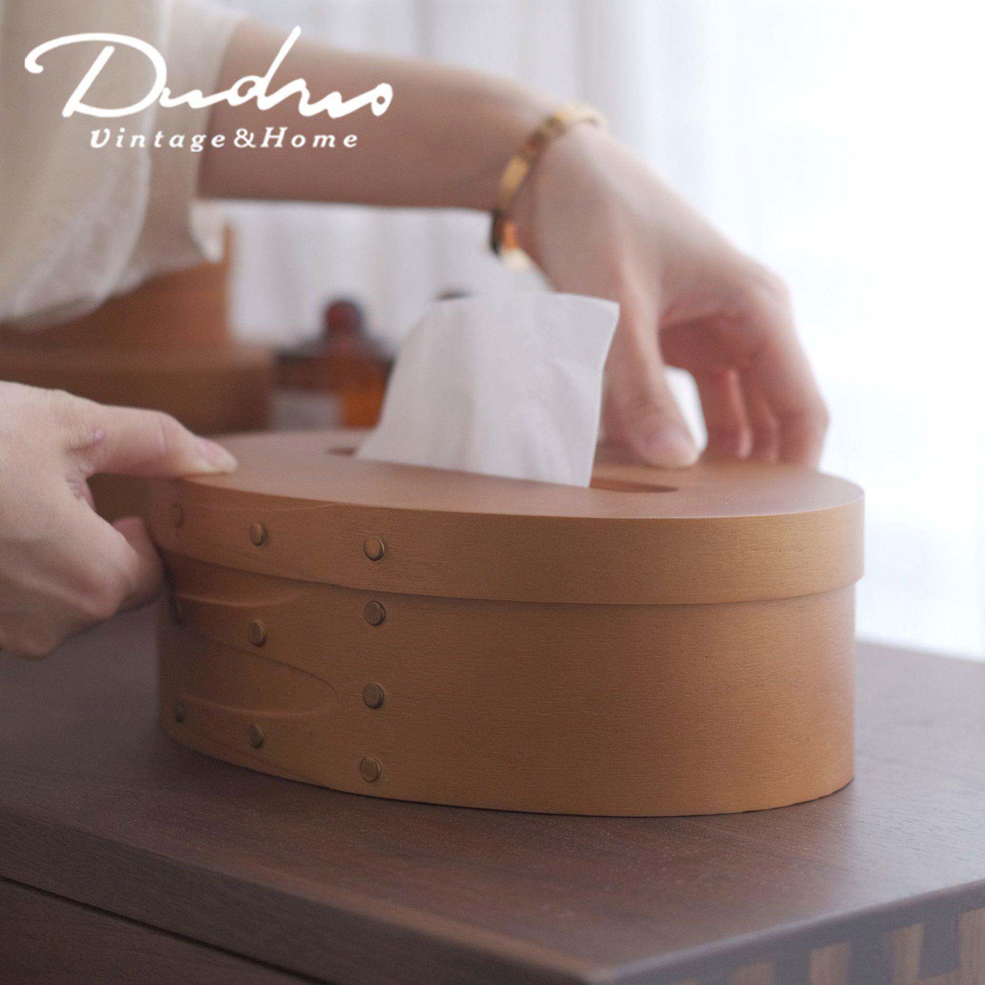 📚 北欧复古手工木制夏克盒家用纸巾盒小众简约收纳盒多用椭圆收纳框