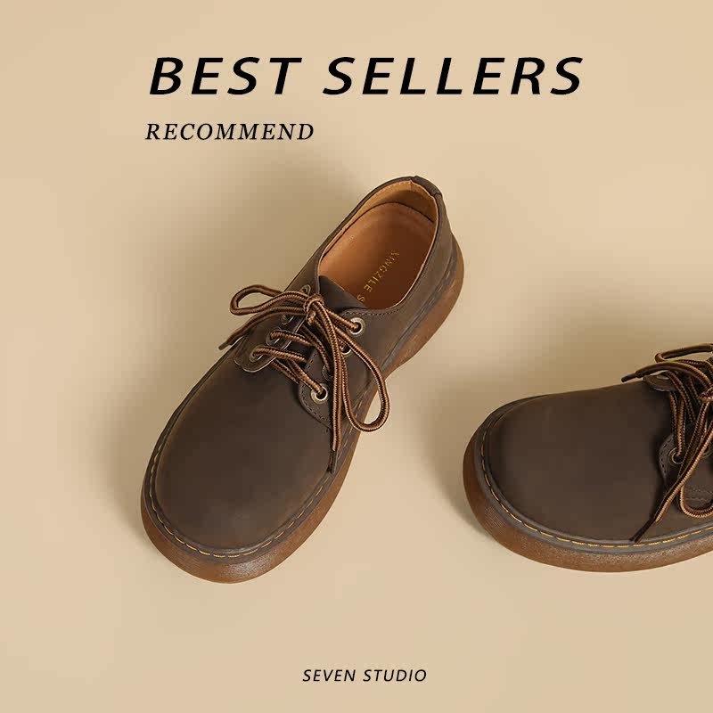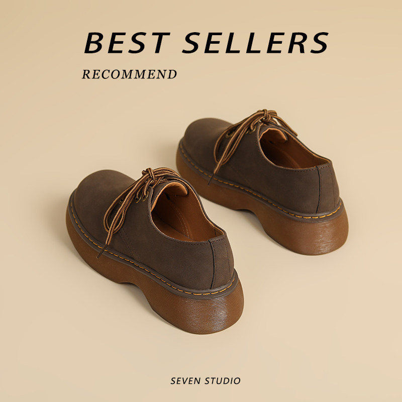 📚 2025春秋新款复古真皮古着厚底马丁鞋女学院风工装小皮鞋增高单鞋