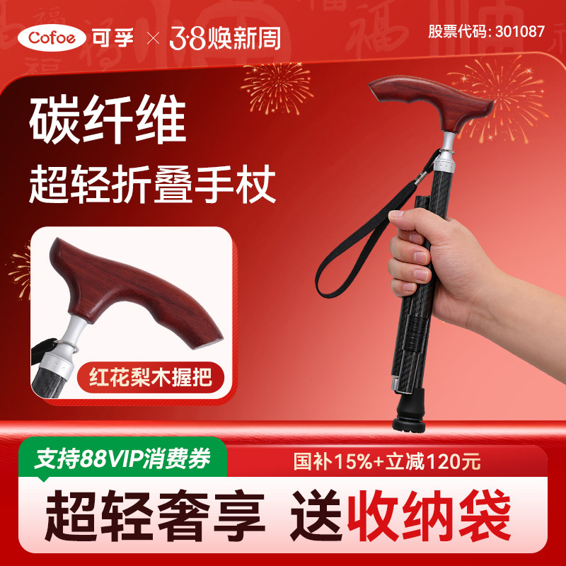 📚 可孚折叠拐杖碳纤维老人防滑手杖户外登山杖拐棍康复走路爬山便携