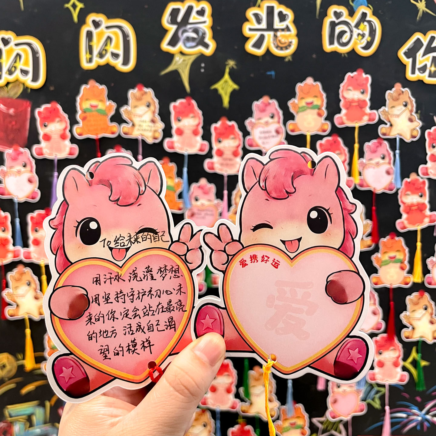 📚 2026年马年空白手写心愿卡初中生开学家长会班级布置教室装饰卡通小马目标卡幼儿园小学生新年愿望祝福贺卡片