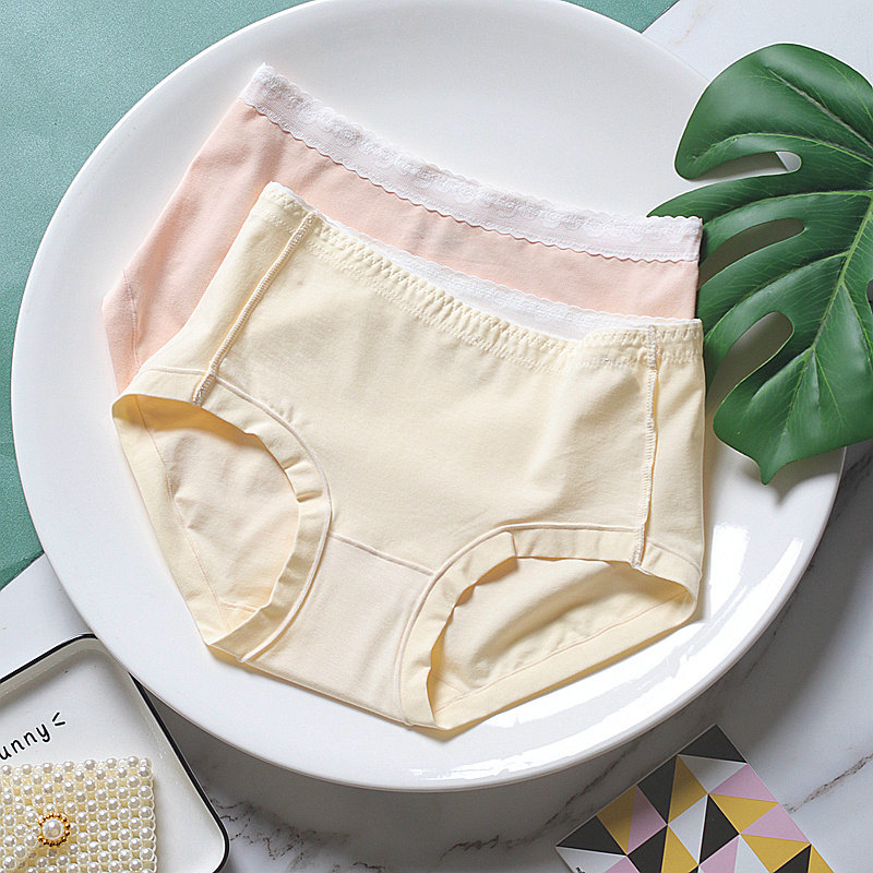 📚 黛丝少女全棉内裤舒适中腰甜美高弹蕾丝边简约运动无痕包臀不卡PP