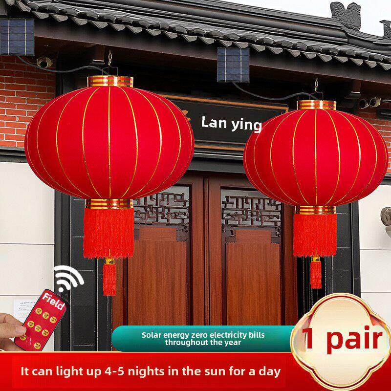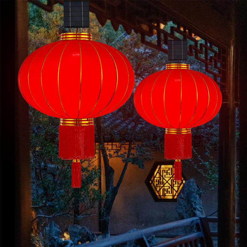 📚 2025新款大红灯笼太阳能庭院户外免插电新年阳台大门口一对装饰灯
