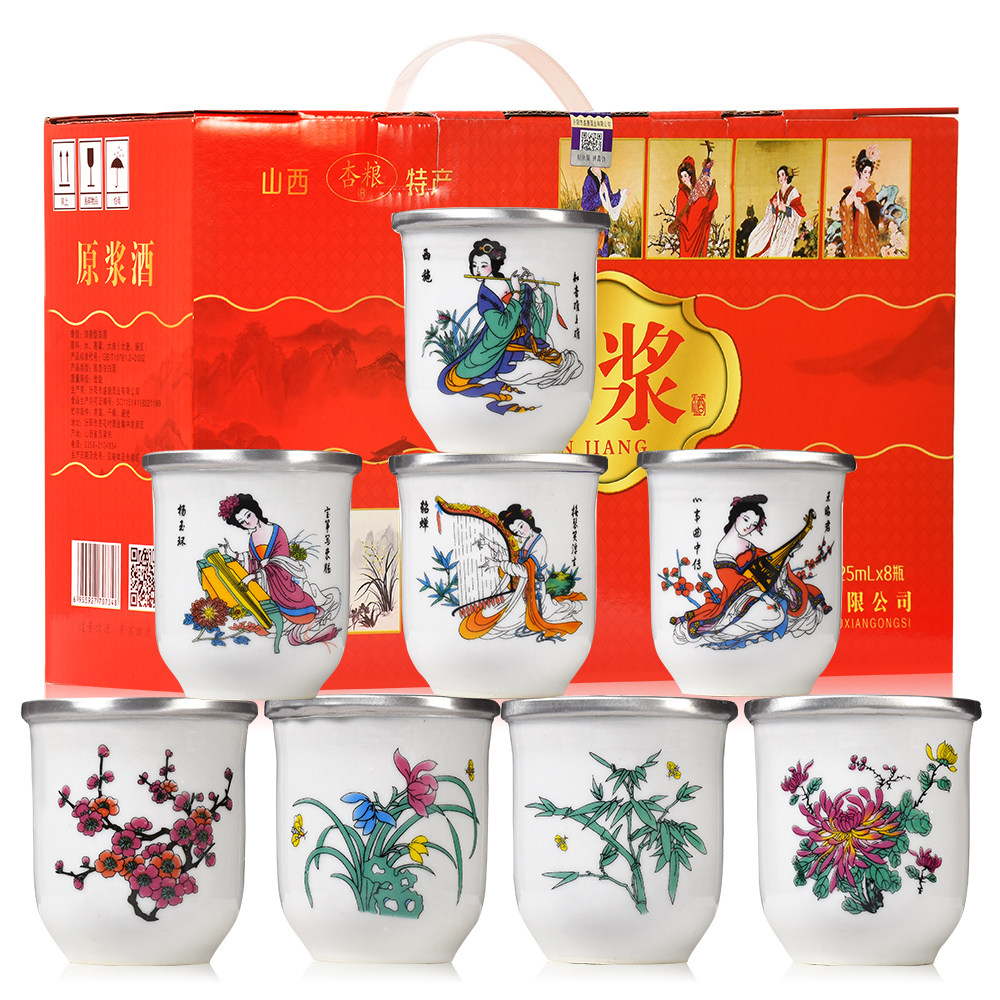 📚 陶瓷原浆口杯酒53度125毫升*8杯礼盒装纯粮酿造小酒杯装酒清香型