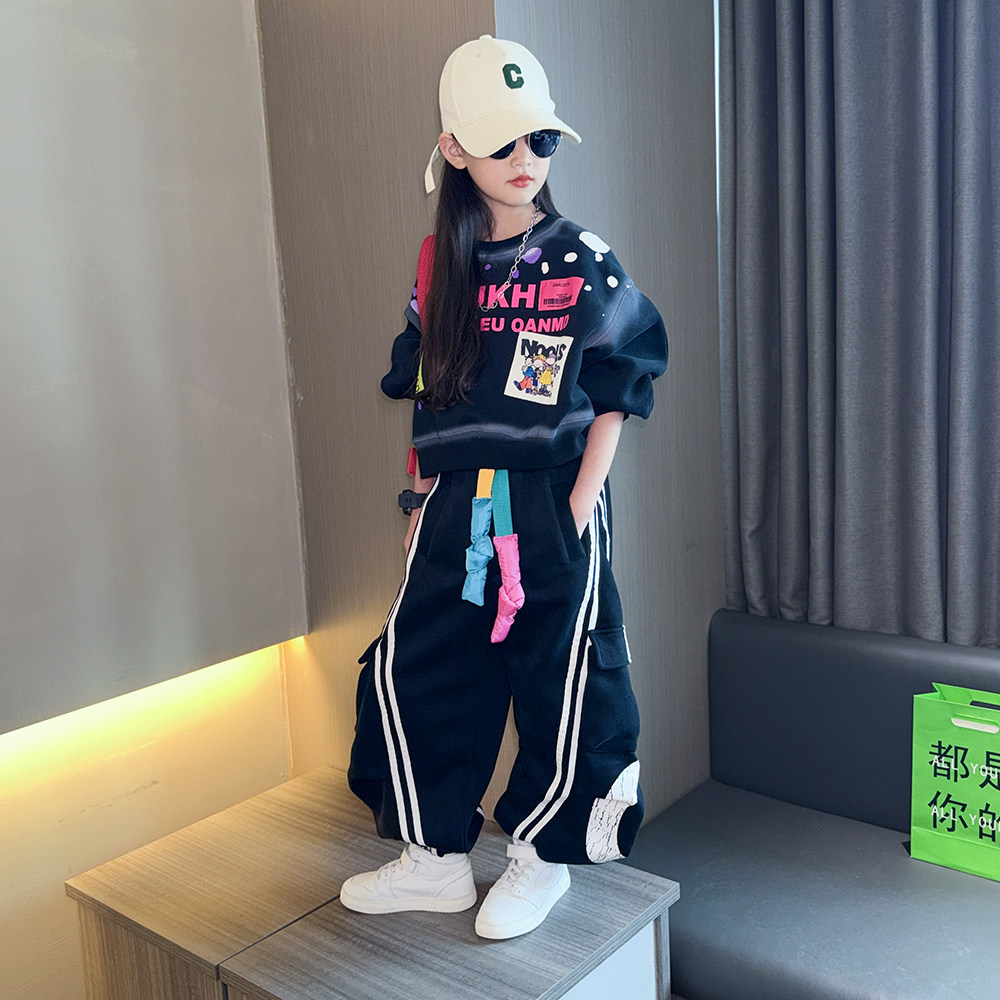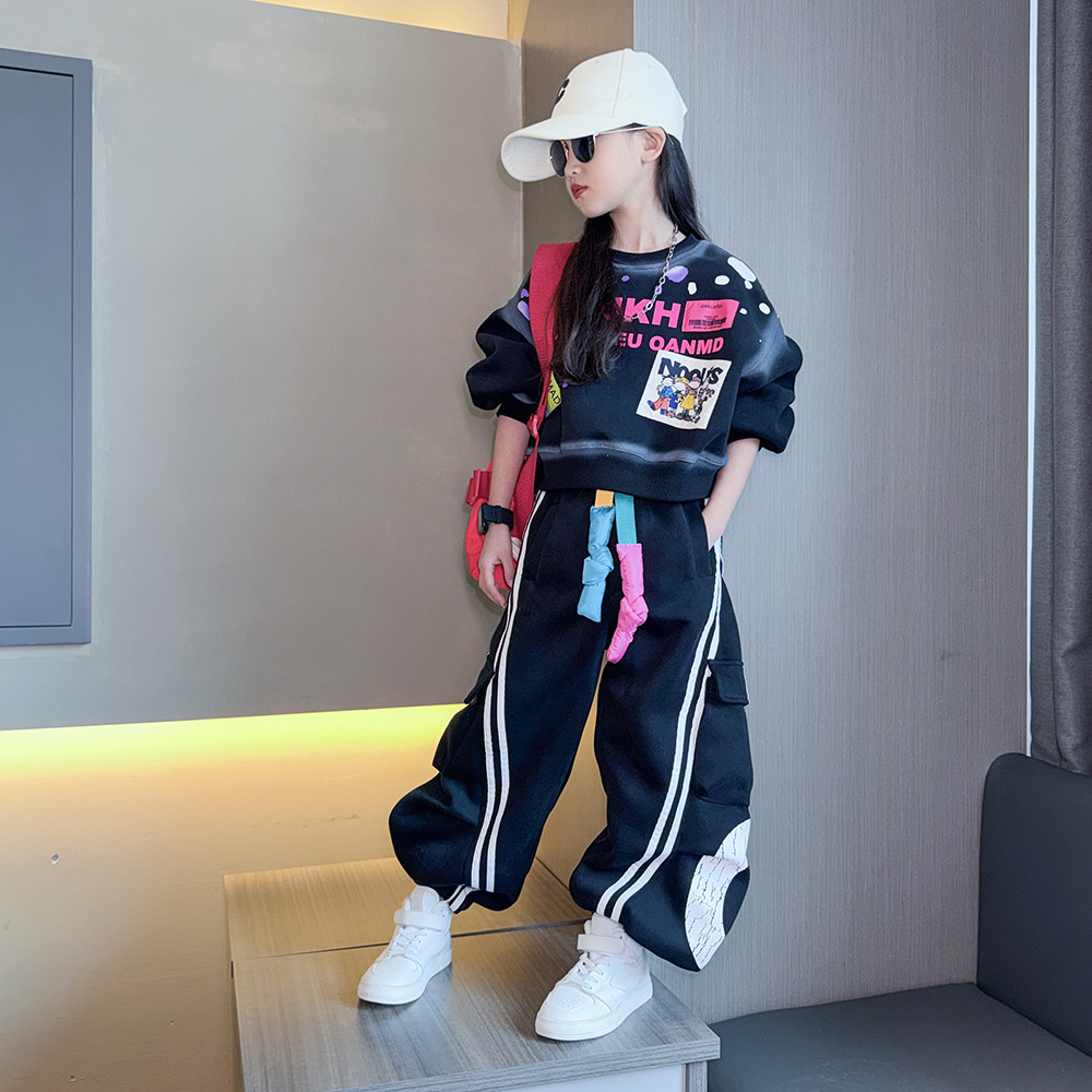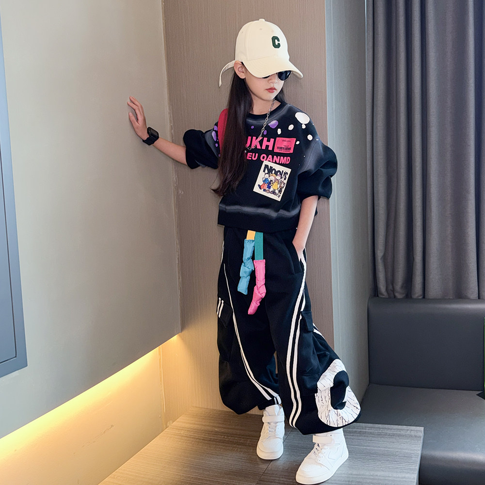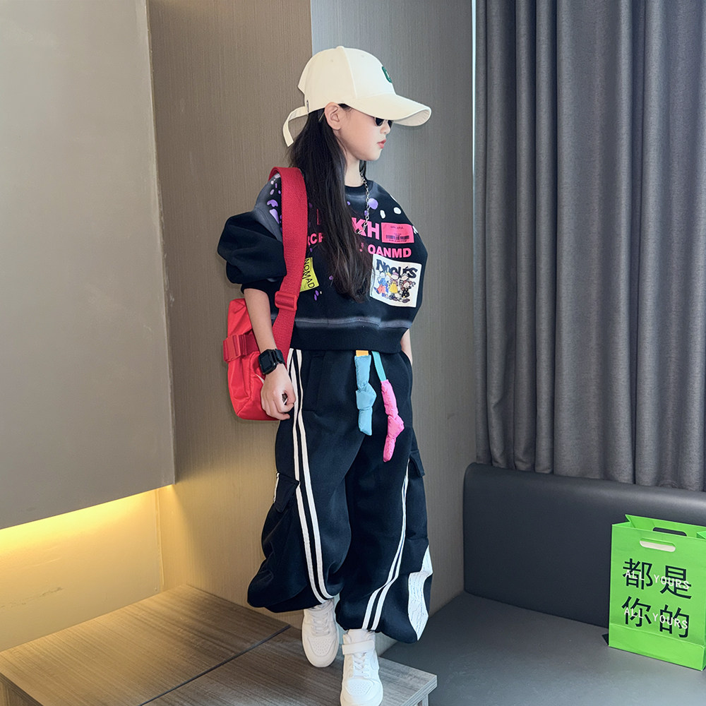 👋亲爱的小仙女们,今天我要给大家种草一款超级心水的童装——女童套装2025新款中大童韩版洋气休闲时尚卡通印花运动两件套!👯♀️