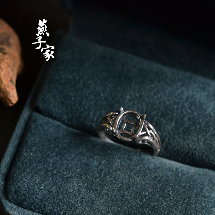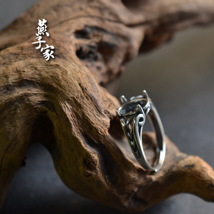 📚 燕子家vintage欧式复古纯银戒托培育祖母绿刻面宝石925银空托8*10