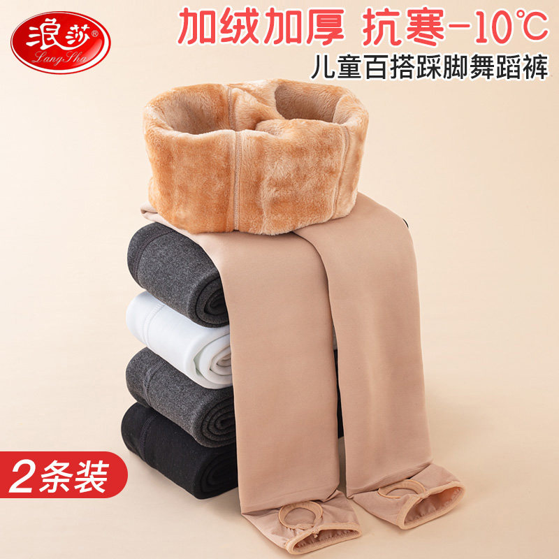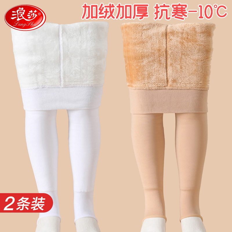 📚 浪莎秋冬儿童连裤袜女童加绒加厚中大童光腿神器肉色踩脚款打底裤