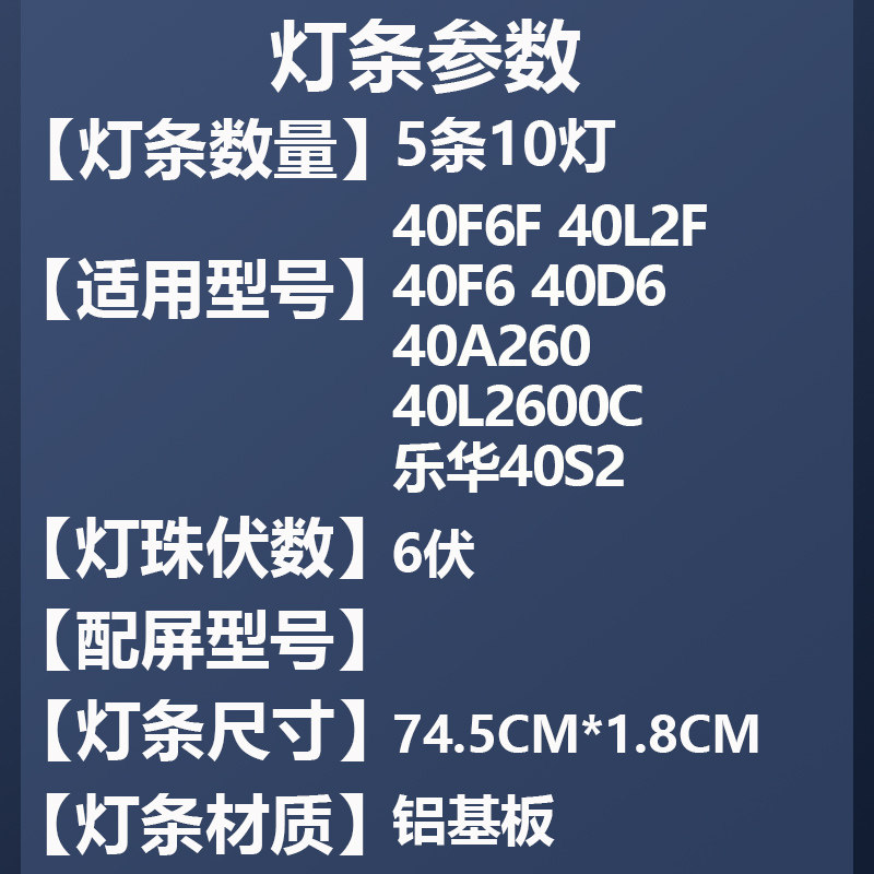 📚 适用TCL 40A262 40L2F 40F6 40D6 40A260 40A160 40A160电视灯条
