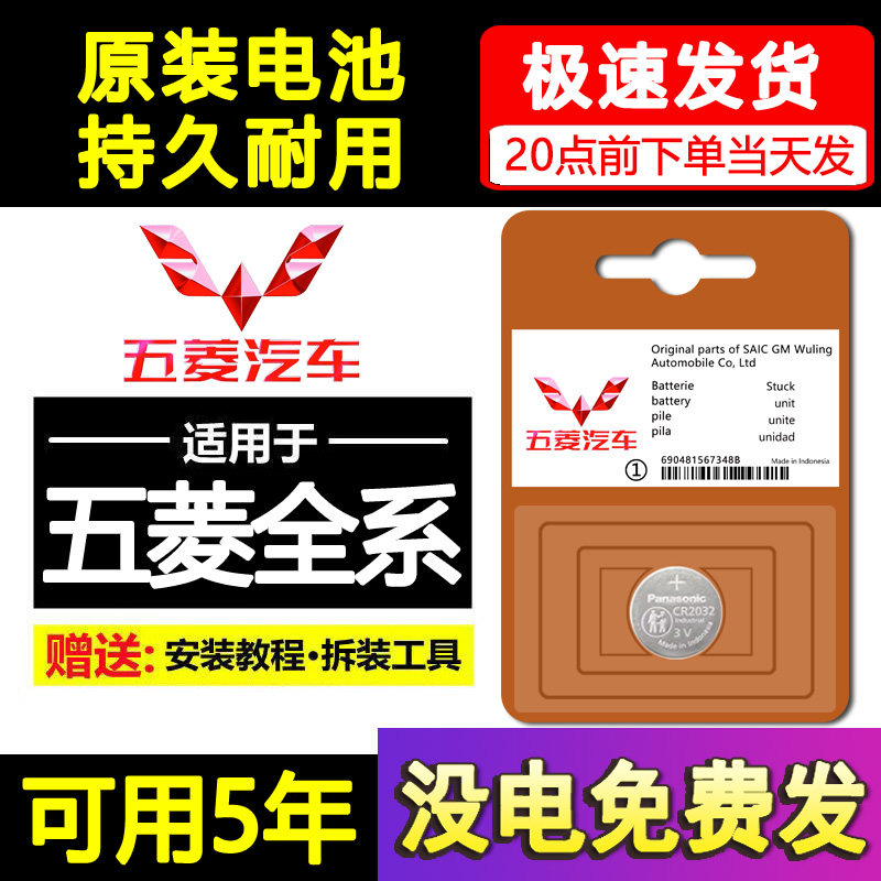 📚 五菱宏光S凯捷星辰荣光V佳辰星驰缤果MINI迷你汽车钥匙遥控器电池