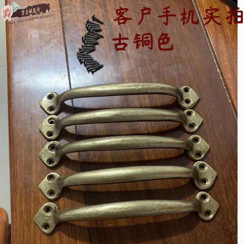 📚 实木门把手抽屉柜门窗户复古铜色把手农家院大门中式仿古纯铜拉手