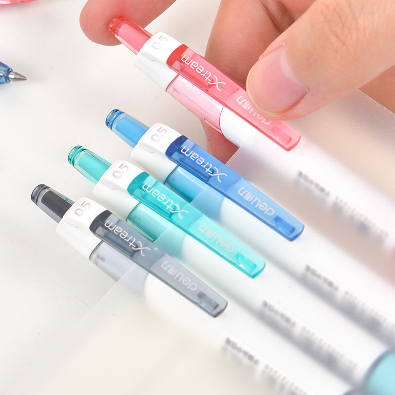 📚 得力S09按动中性笔老师批改红笔学生考试臻顺滑子弹头黑色签字笔