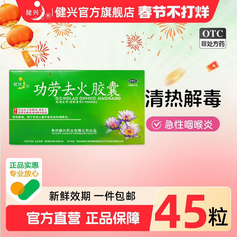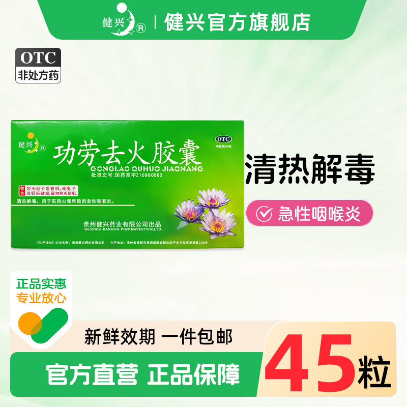📚 健兴功劳去火胶囊0.3g*45粒清热解毒实热火毒急性咽喉炎