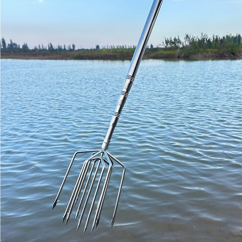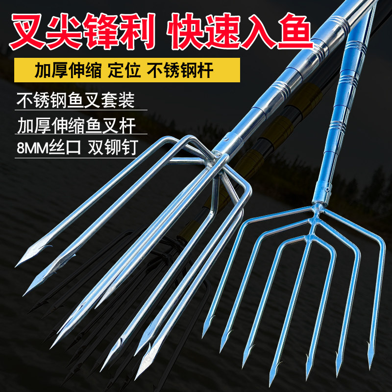 📚 水云川加粗加厚伸缩杆大倒刺鱼叉不锈钢头捕鱼叉头渔叉鱼插鱼叉子