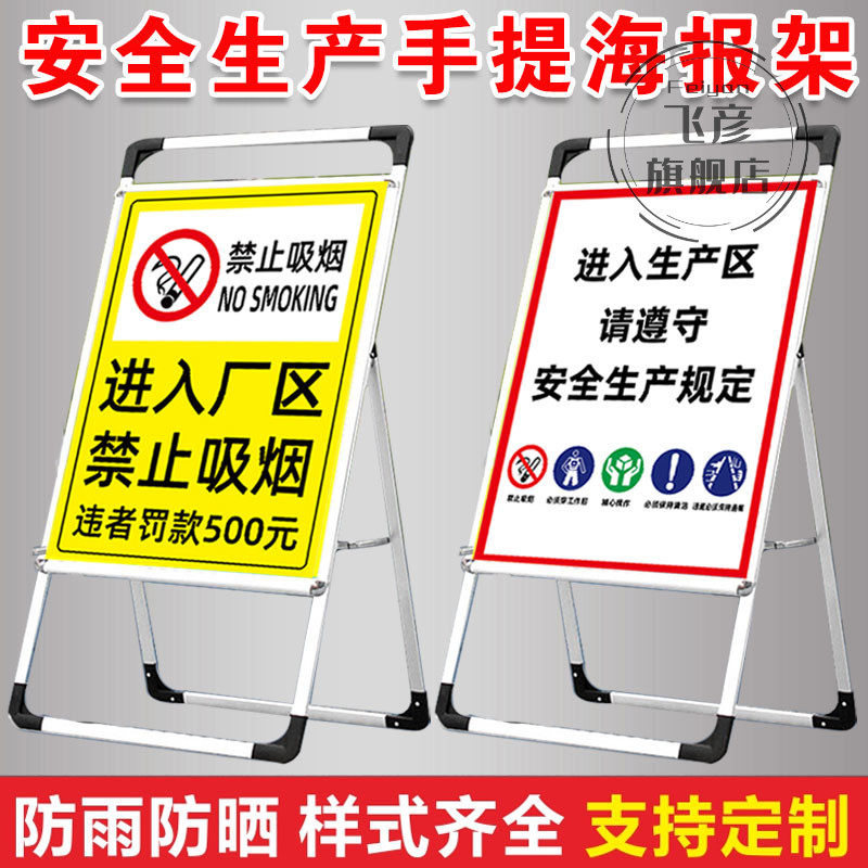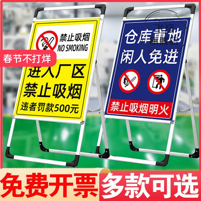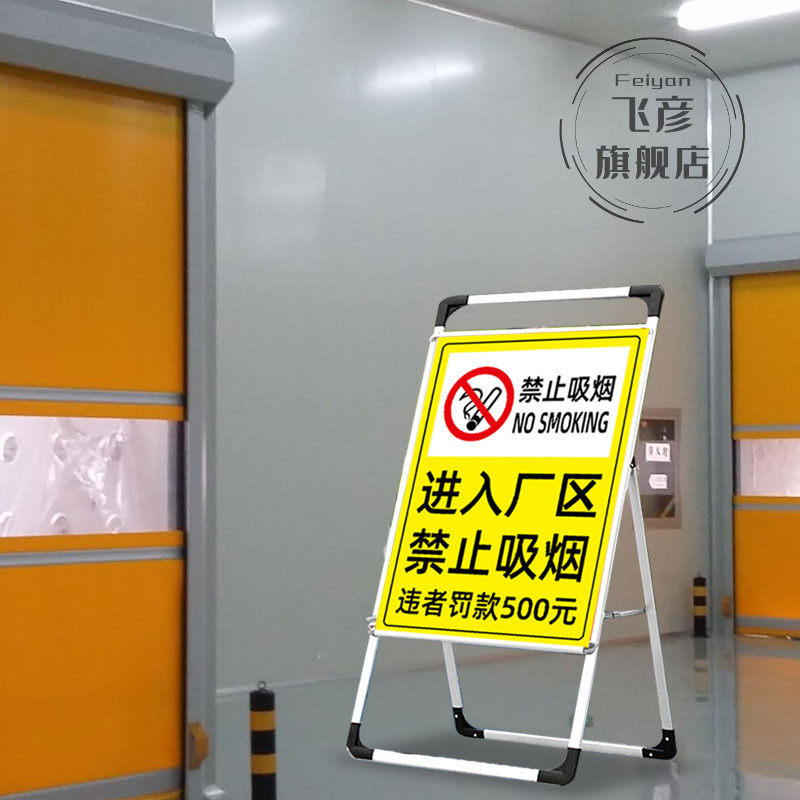 📚 进入厂区禁止吸烟违者罚款警示标识牌仓库警告标志墙贴油库厨房重地不得入内消防安全标识牌手提海报架定制