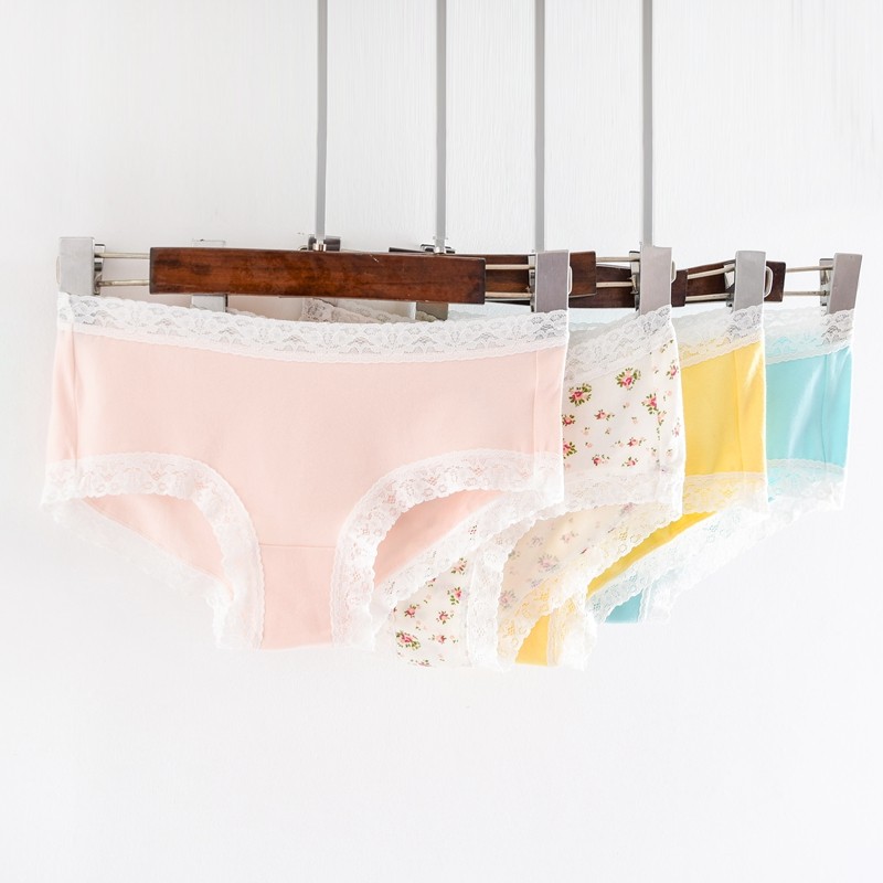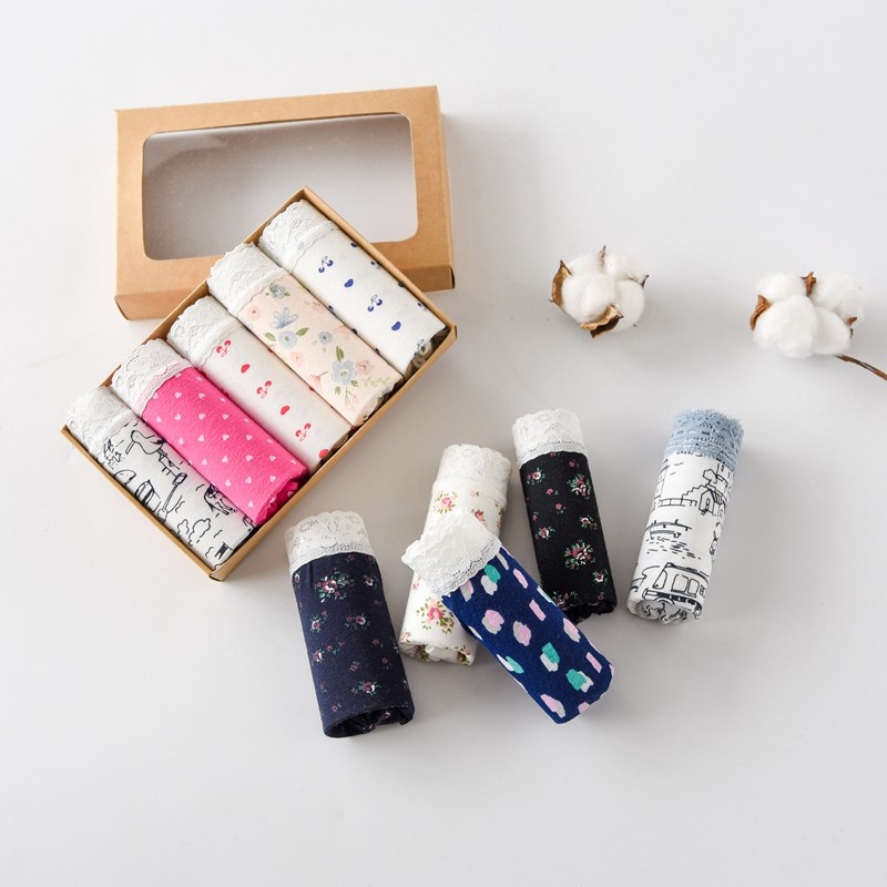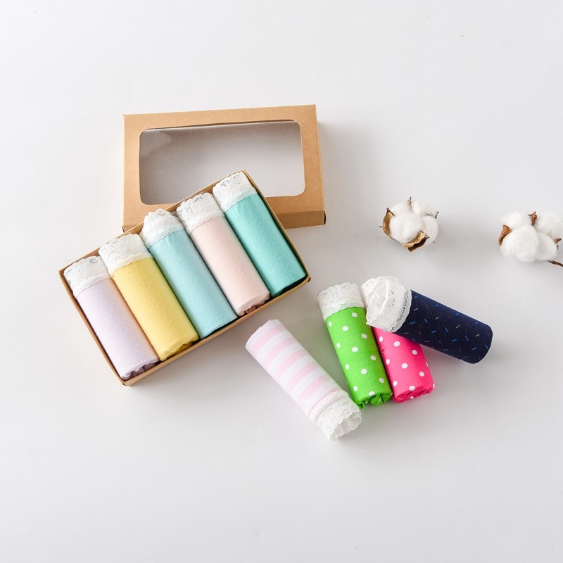 📚 源头工厂包邮5条礼盒装 纯棉蕾丝边精致女士内裤 简约甜美三角裤
