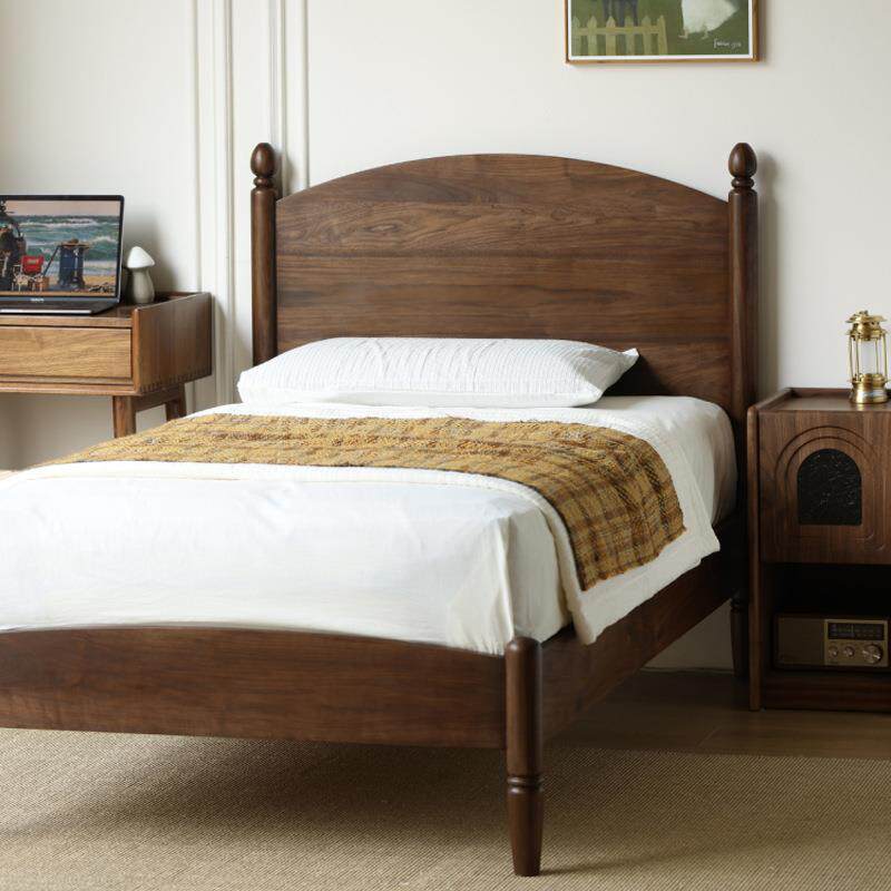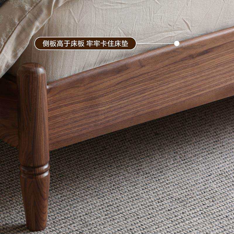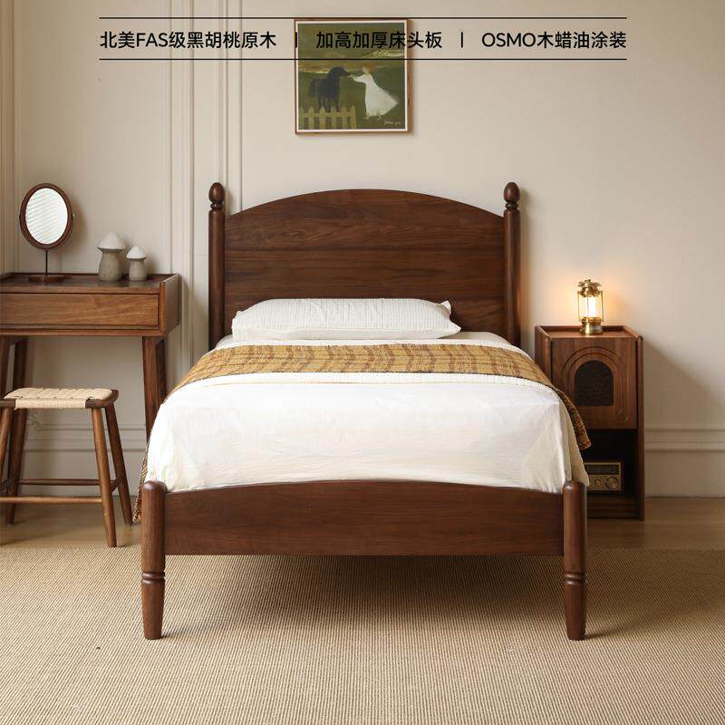 📚 北美黑胡桃木实木床简约家用1米5单人床卧室儿童床男孩女孩家具