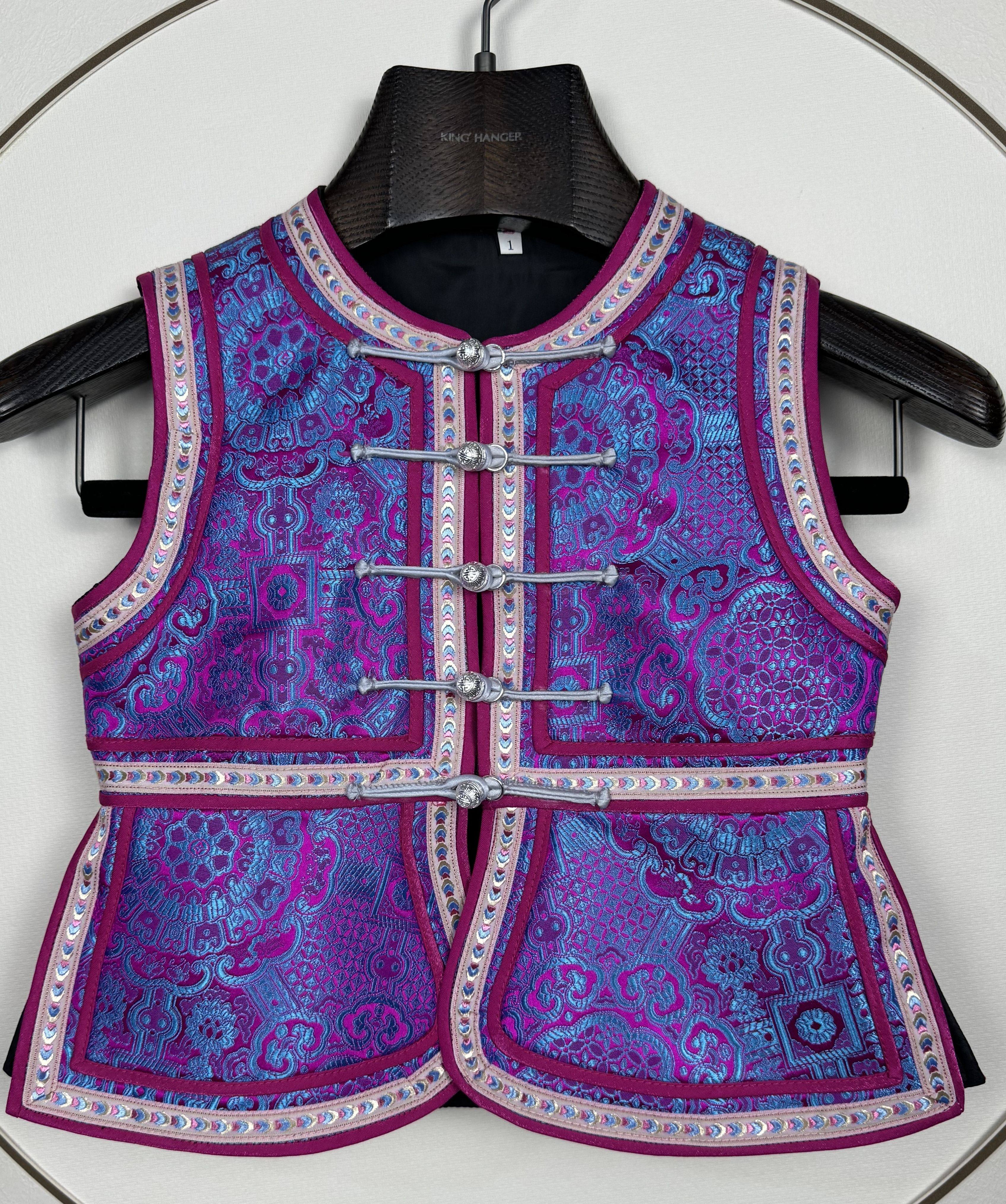 👚这款马甲的设计风格独特,融合了四季款复古民族风,充满了浓厚的民族风情。穿上它,仿佛穿越到了蒙古族的世界,让人仿佛置身于那片广袤的大草原。