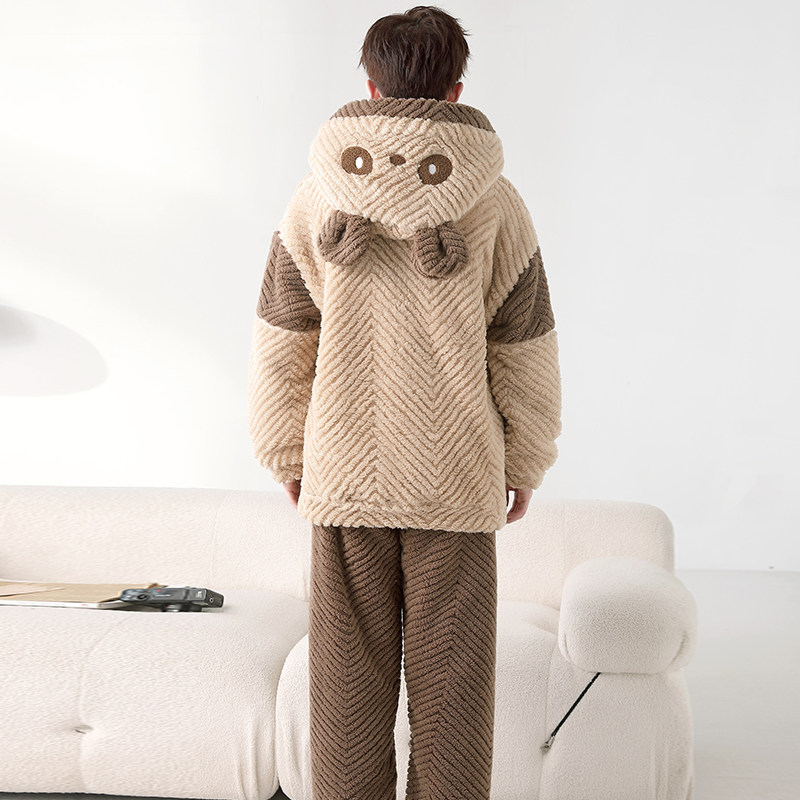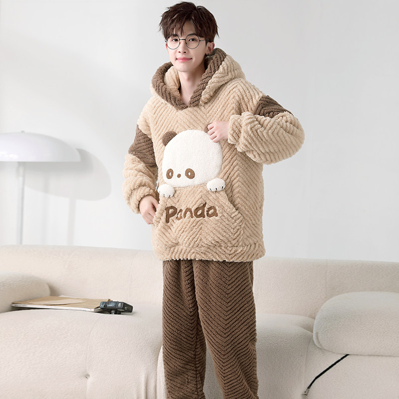 📚 2025新款珊瑚绒睡衣男秋冬季加绒加厚青少年大码法兰绒家居服套装