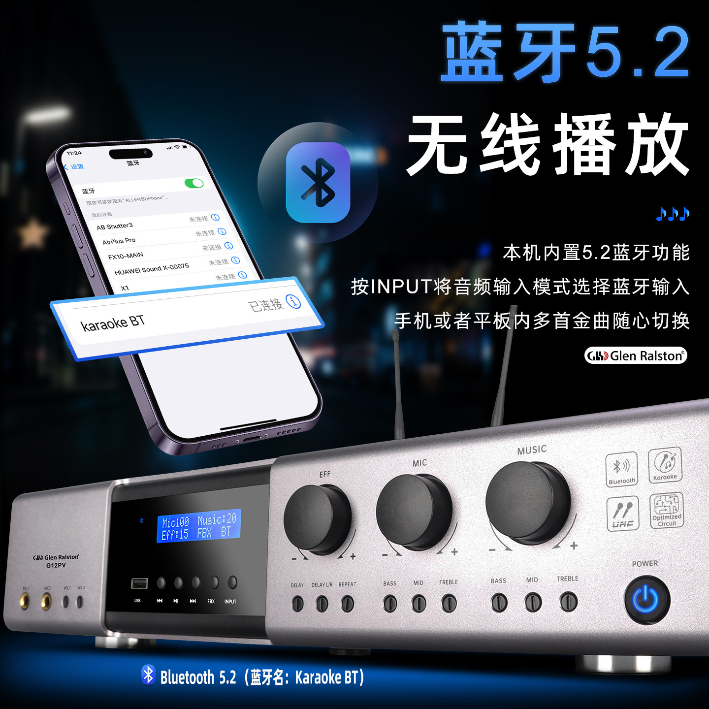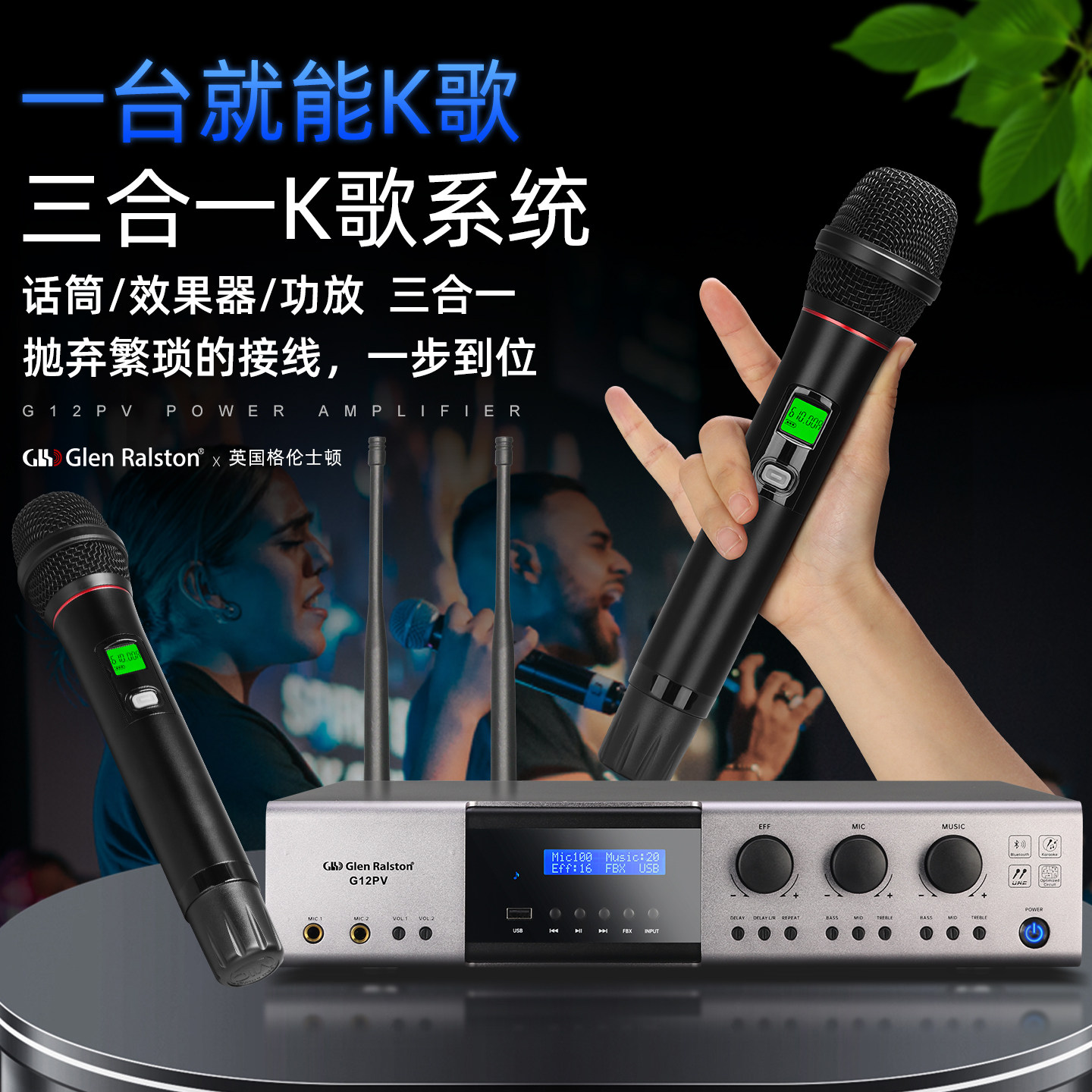 📚 格伦士顿G12PV防啸叫三合一多功能功放带无线话筒一体机家用k歌