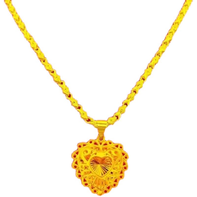 📚 香港仿999仿金色项链不掉色女铜镀24k金饰品水波链宫廷爱心璀璨心