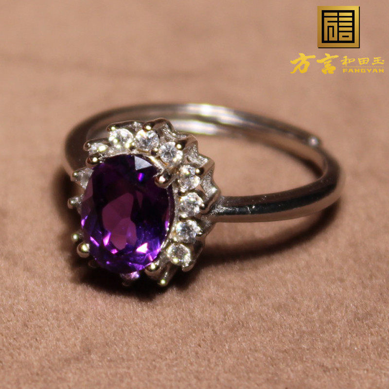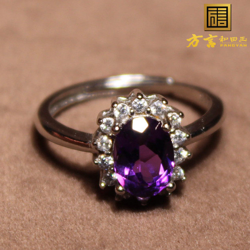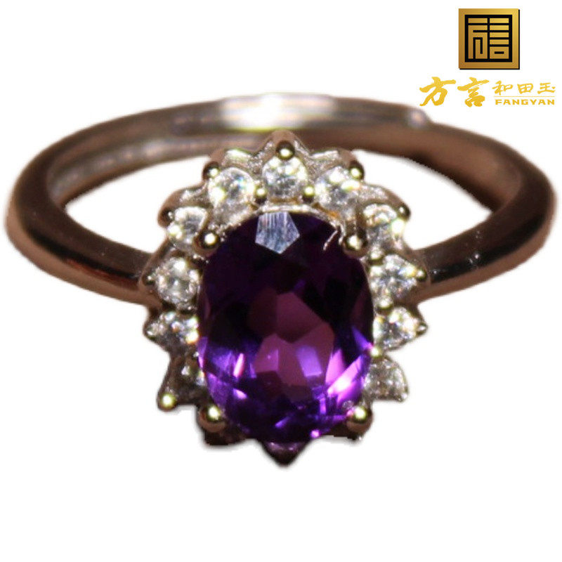 📚 方言放巨漏精品高品质乌拉圭原石原矿紫水晶925银镶嵌活口戒指A5