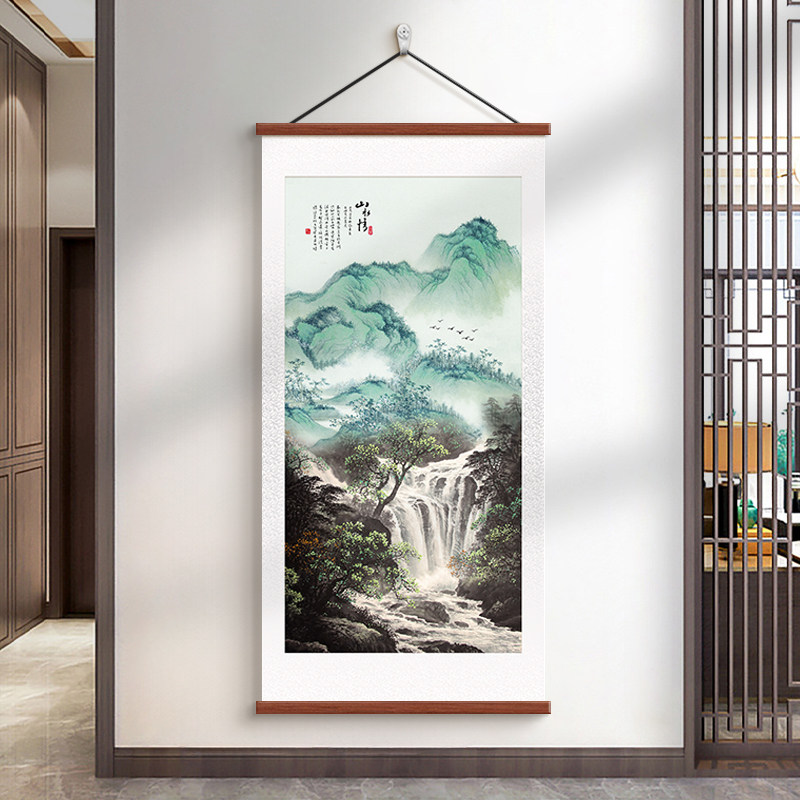 📚 新中式大气山水国画走廊过道玄关装饰画农村堂屋中堂画办公室挂画
