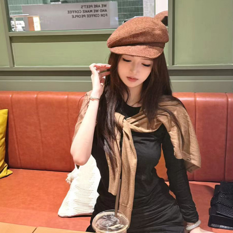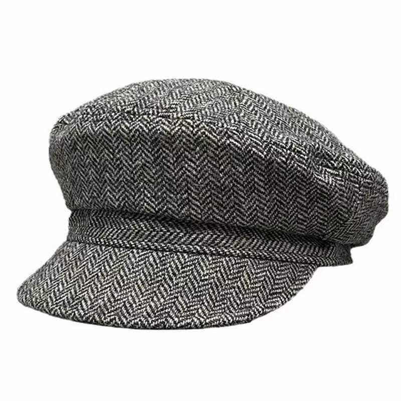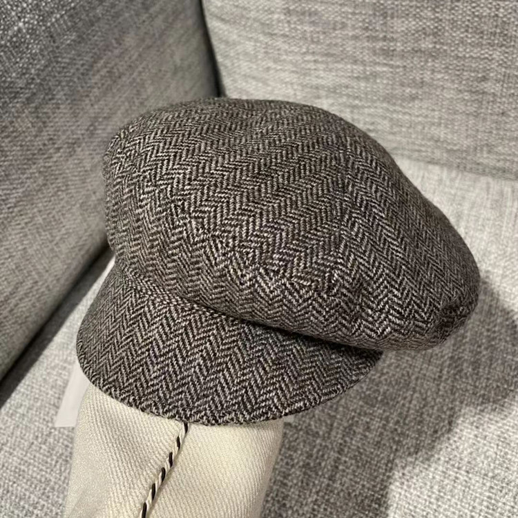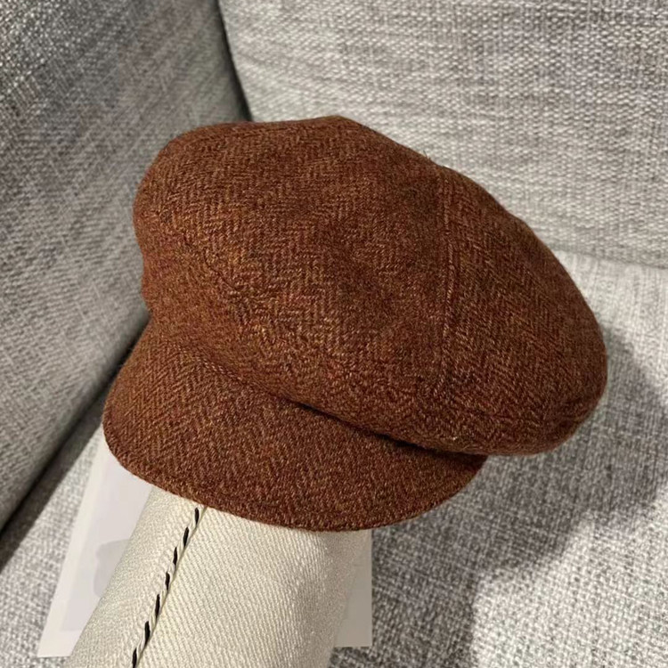 📚 秋冬款鸭舌帽帽顶拼接八角帽日系文艺复古羊毛报童帽显脸小贝雷帽