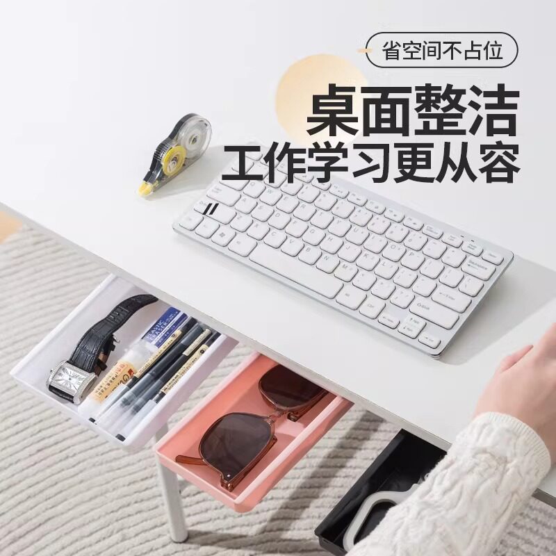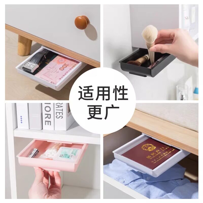 📚 桌下抽屉式收纳盒桌面办公室防盗隐藏神器暗格粘贴式小隐形藏钱盒