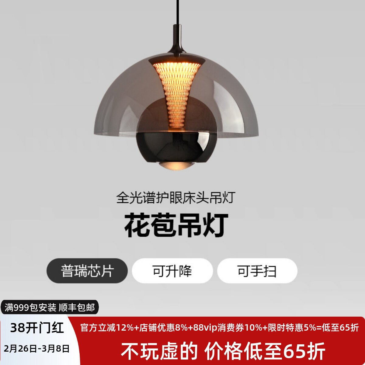 📚 意式极简轻奢升降手扫花苞床头吊灯高级感主卧室房间玄关吊线灯