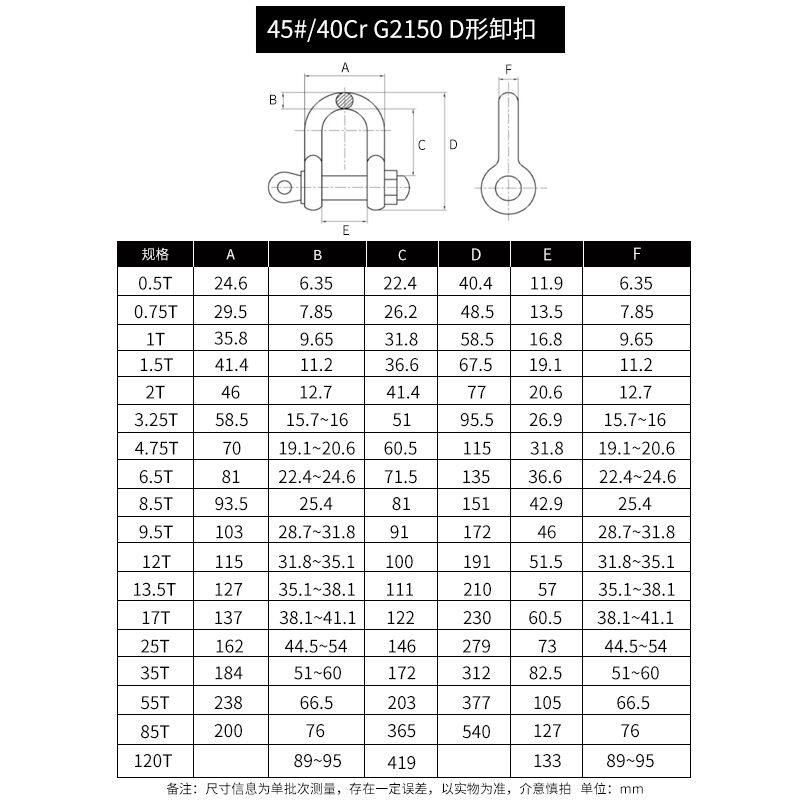 📚 45#/40Cr G2150 D形卸扣 蓝白锌 0.5T~120T