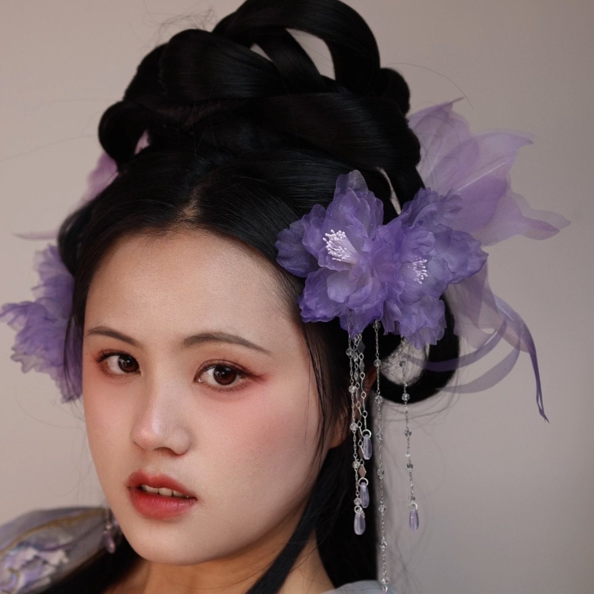 📚 原创 鸢尾蝶 真丝烫花蝴蝶流苏发夹簪花发钗古风发饰汉服配饰仙气