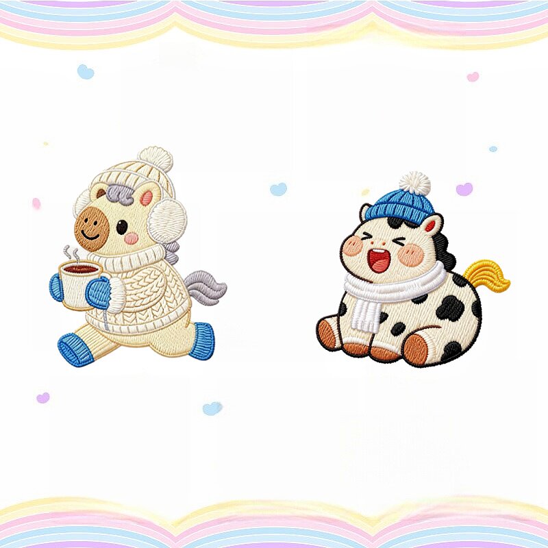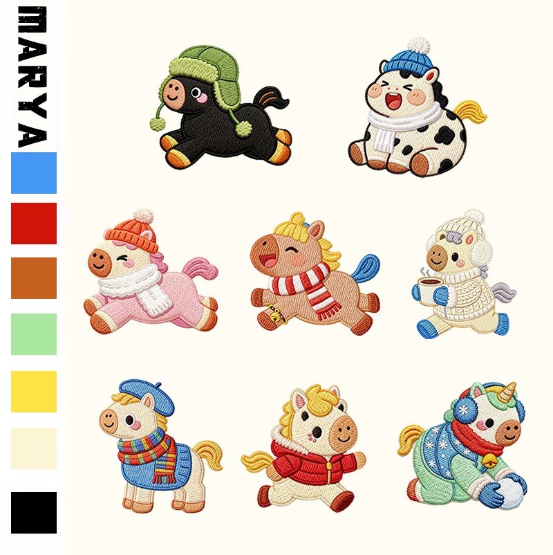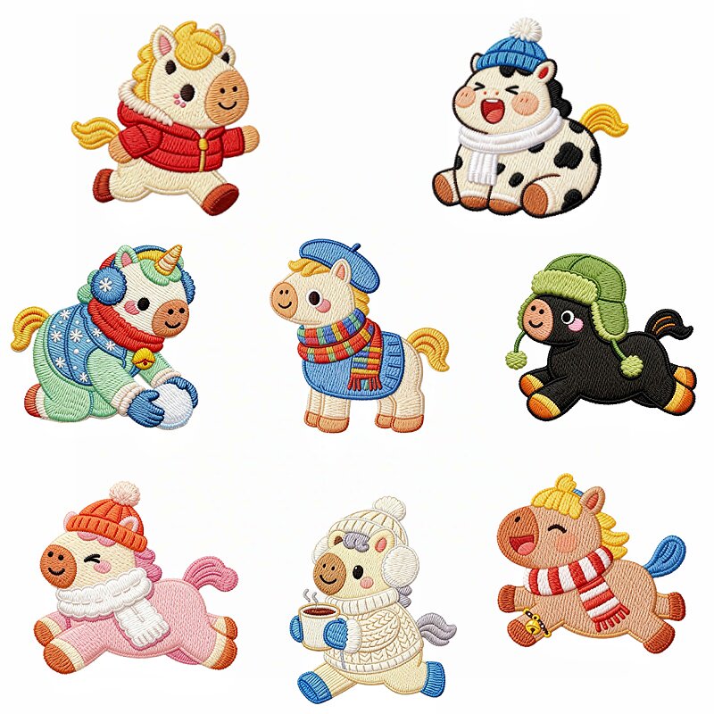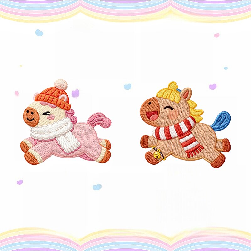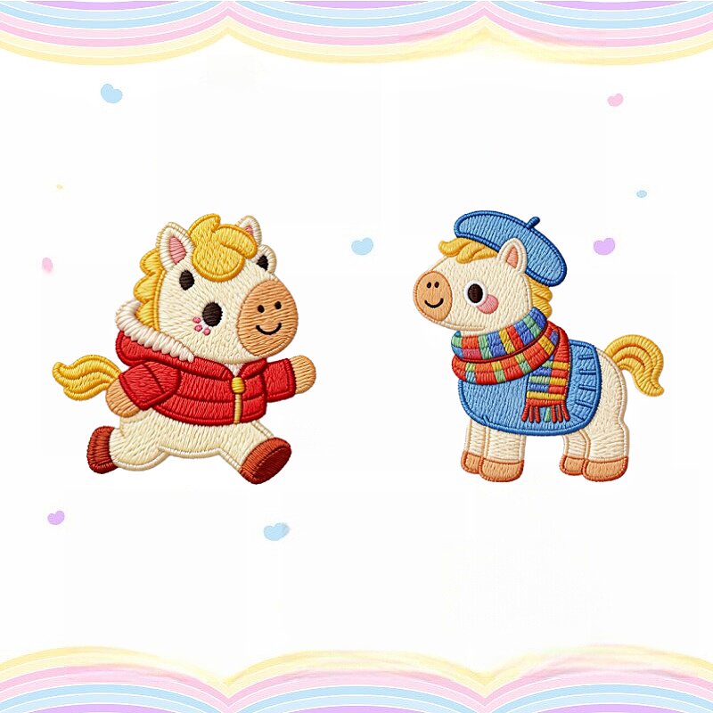 📚 羽绒服补丁贴衣服破洞小号修补贴布原创新款冬日小马装饰刺绣布贴