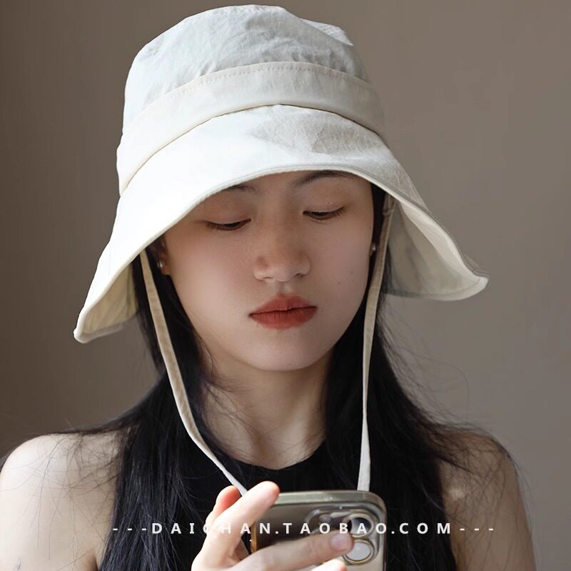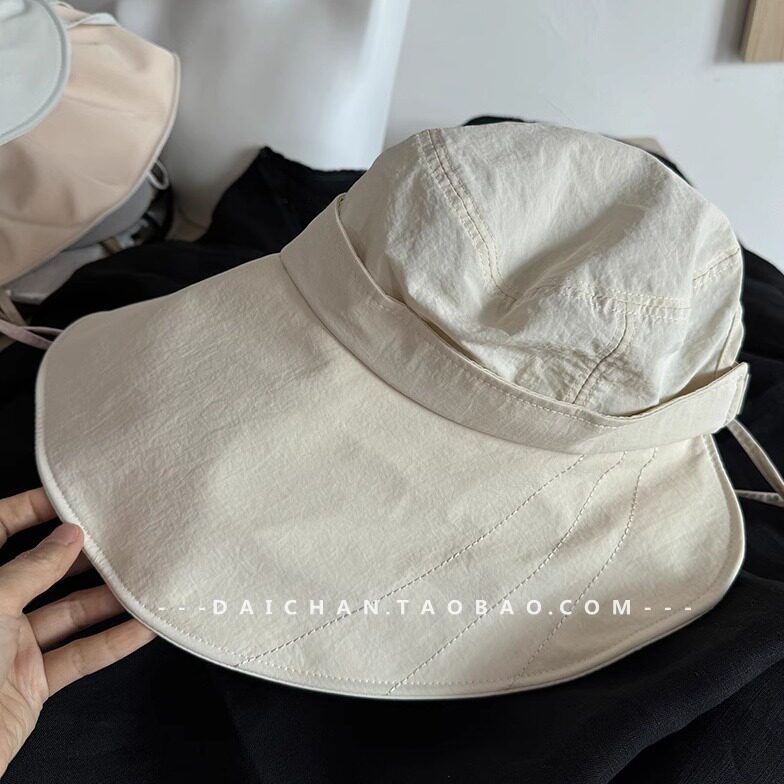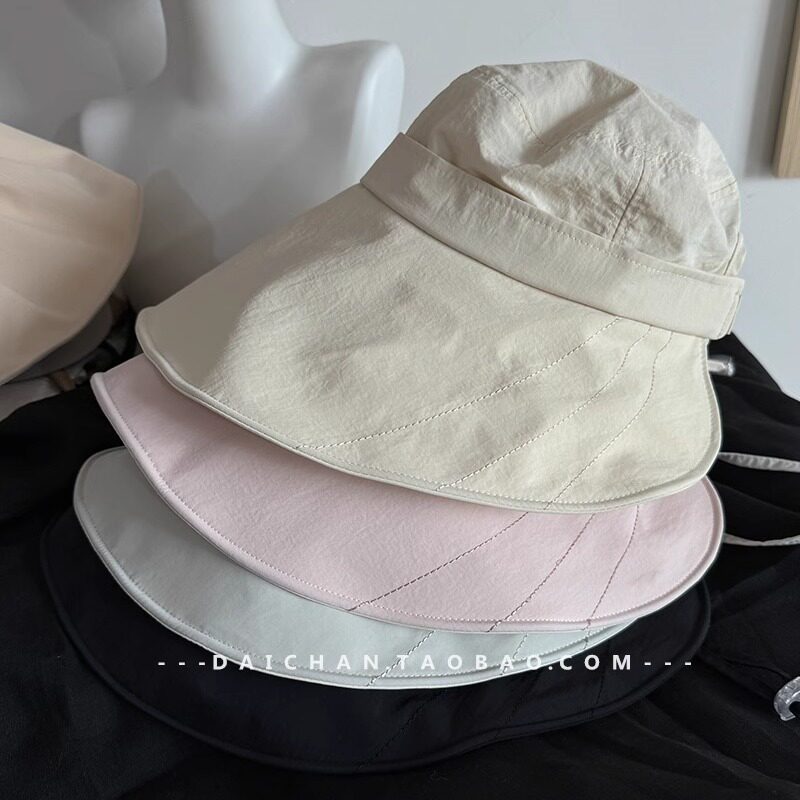 📚 护全脸 速干+黑胶加长帽檐防紫外线渔夫帽 遮阳帽 可扎马尾帽子女