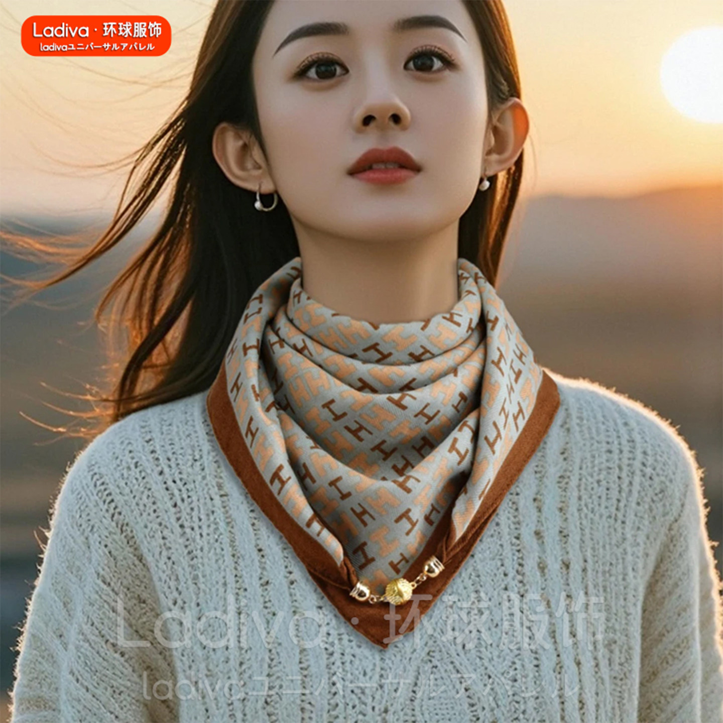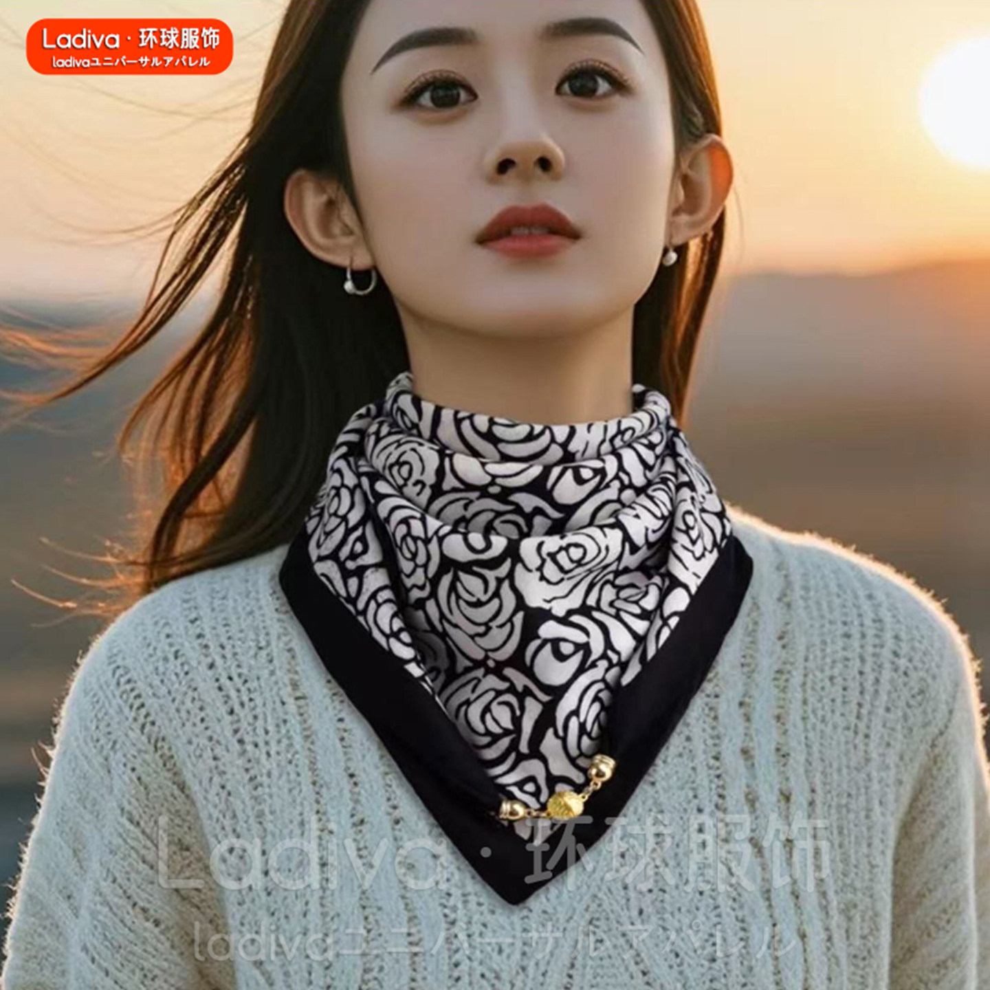 📚 2026新款春秋季丝巾围脖防寒护颈防蹭衣领围巾高级感磁吸扣三角巾