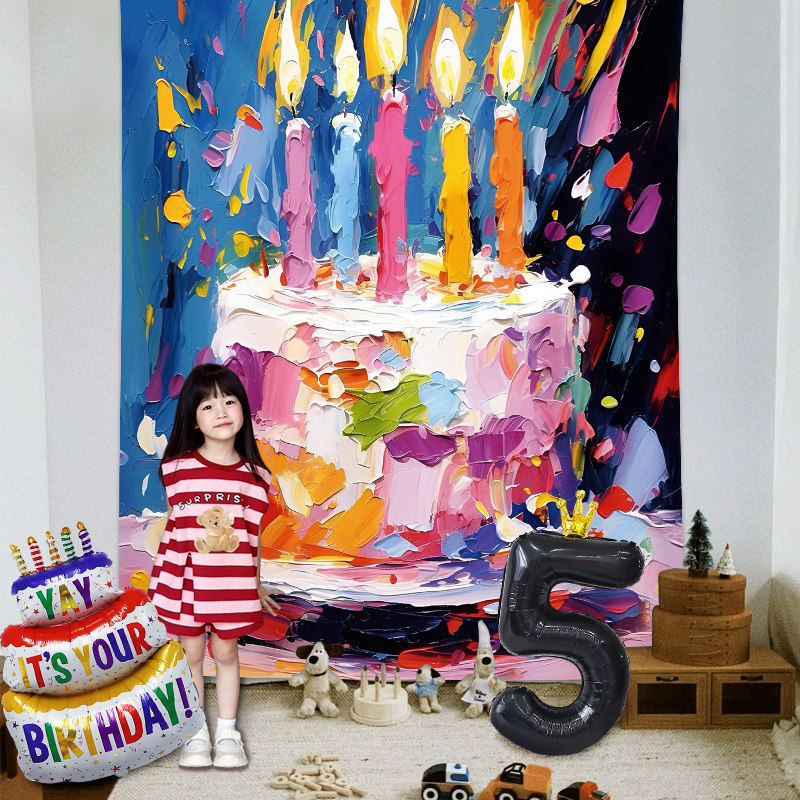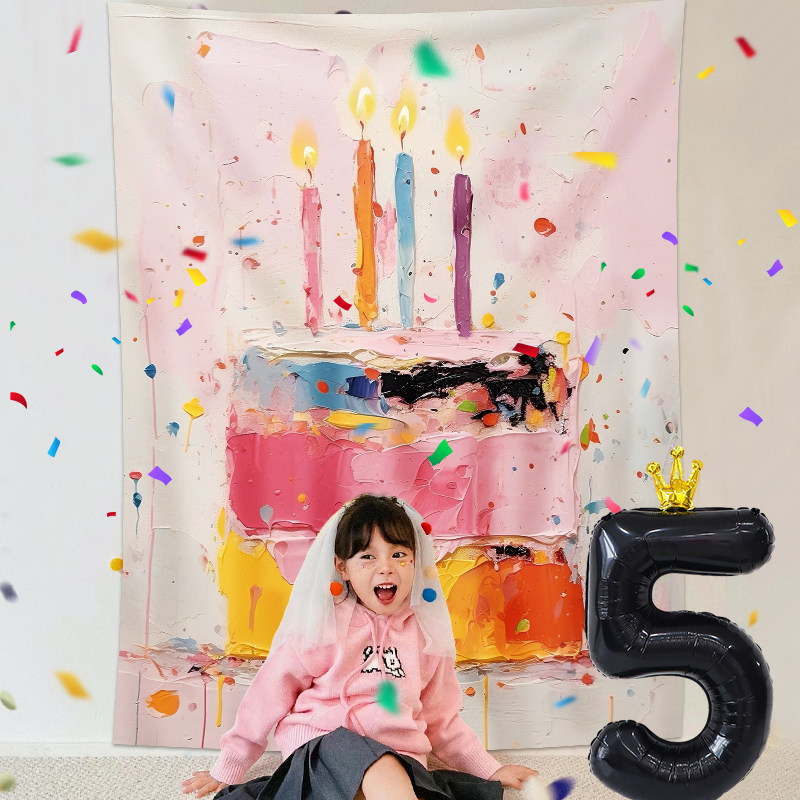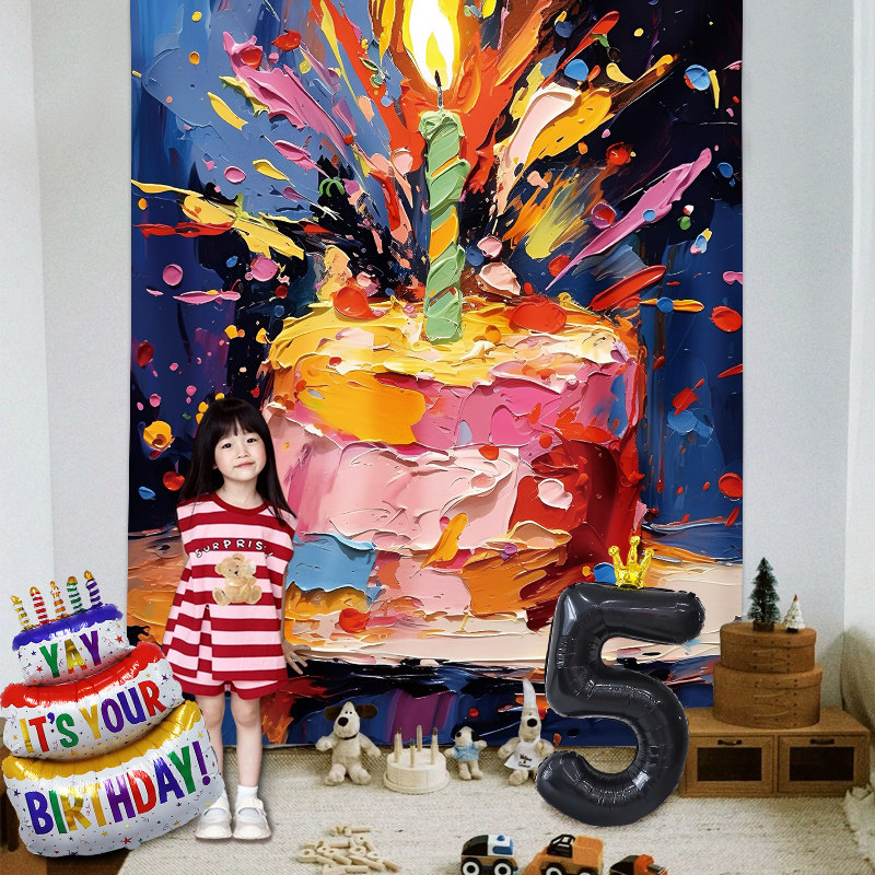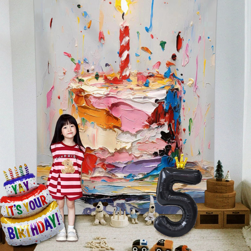 📚 儿童ins油画风蛋糕大海报男女孩生日装饰场景布置氛围感拍照道具