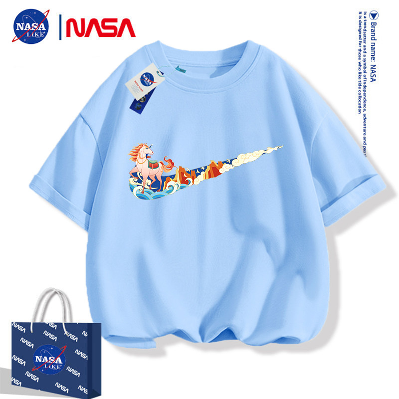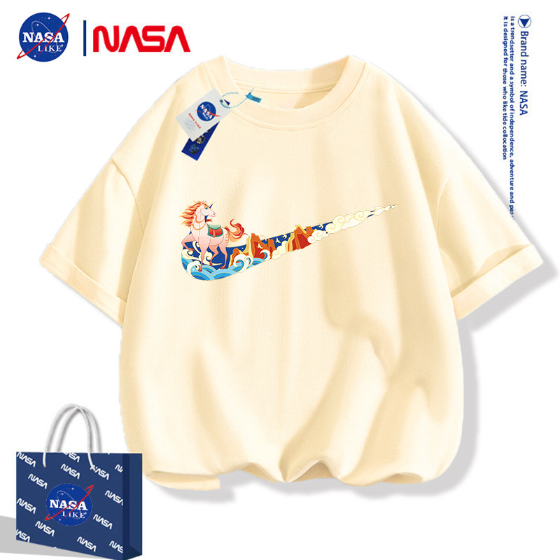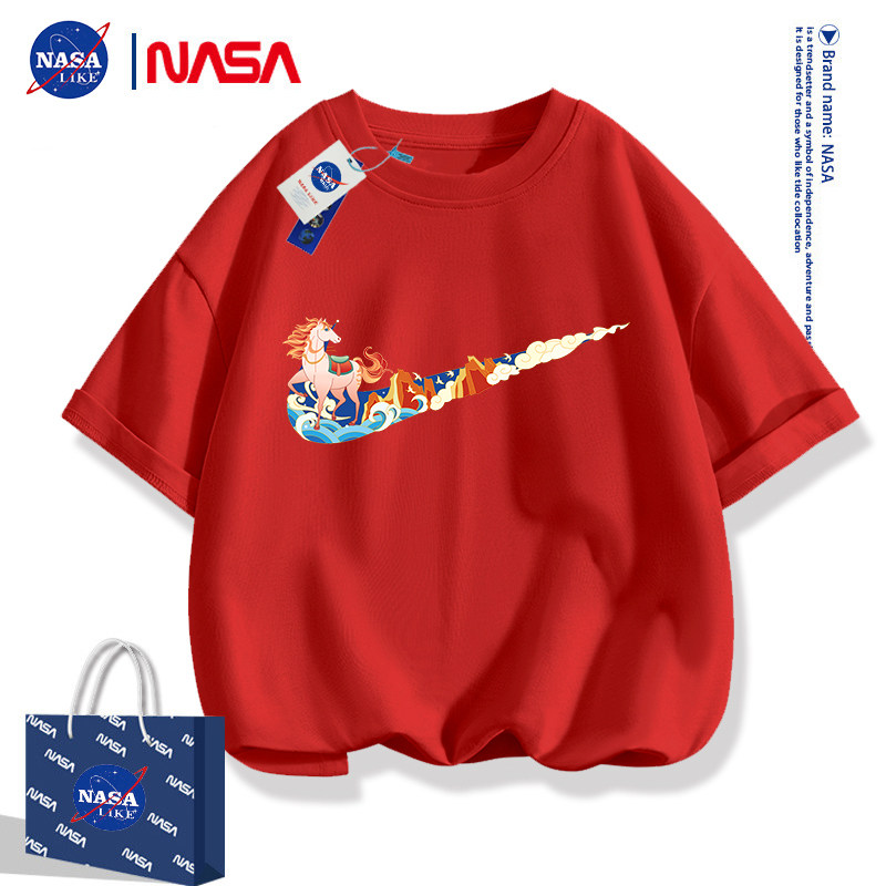 📚 NASA联名纯棉短袖t恤男童女童红色2026马年新款夏季洋气童装上衣